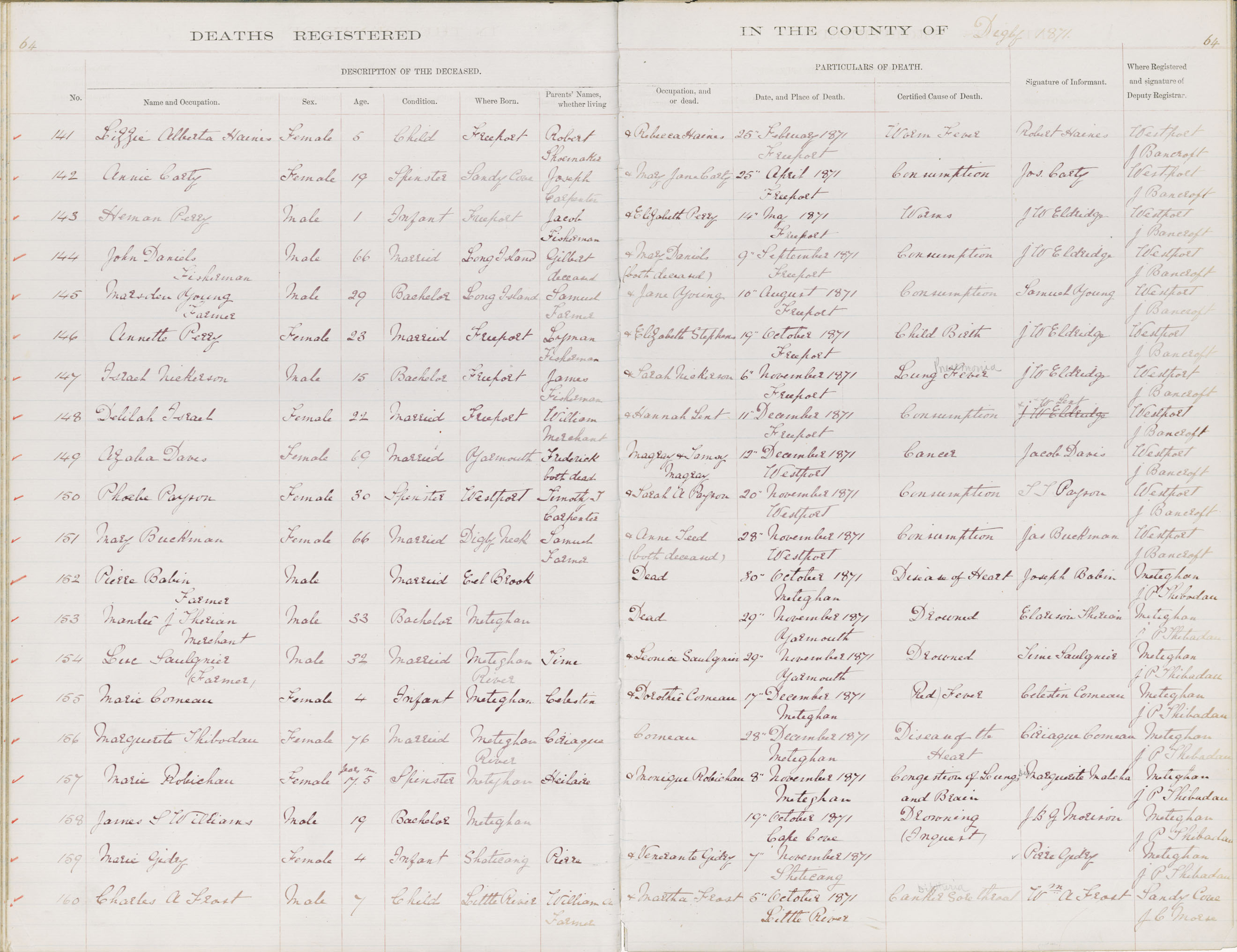 Death Registration: Year: 1871 book: 1806 page: 64 number: 160