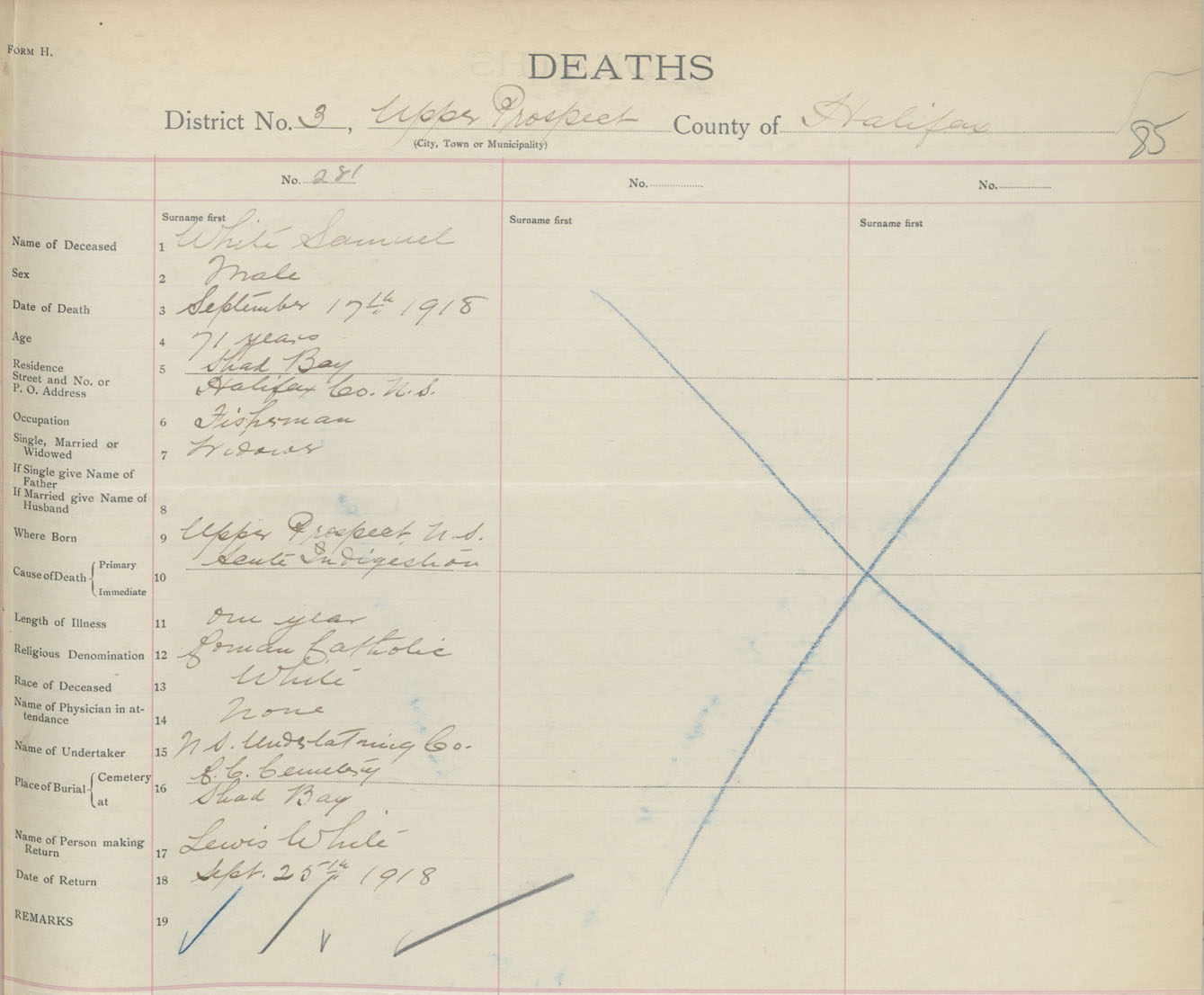 Death Registration: Year: 1918 book: 35 page: 85 number: 281