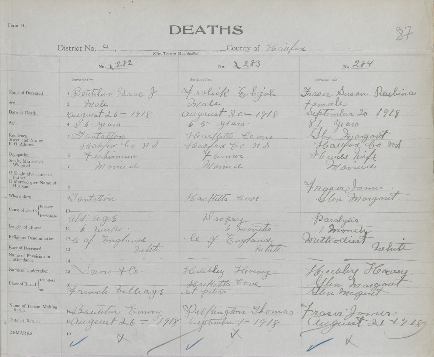 Death Registration: Year: 1918 book: 35 page: 87 number: 282