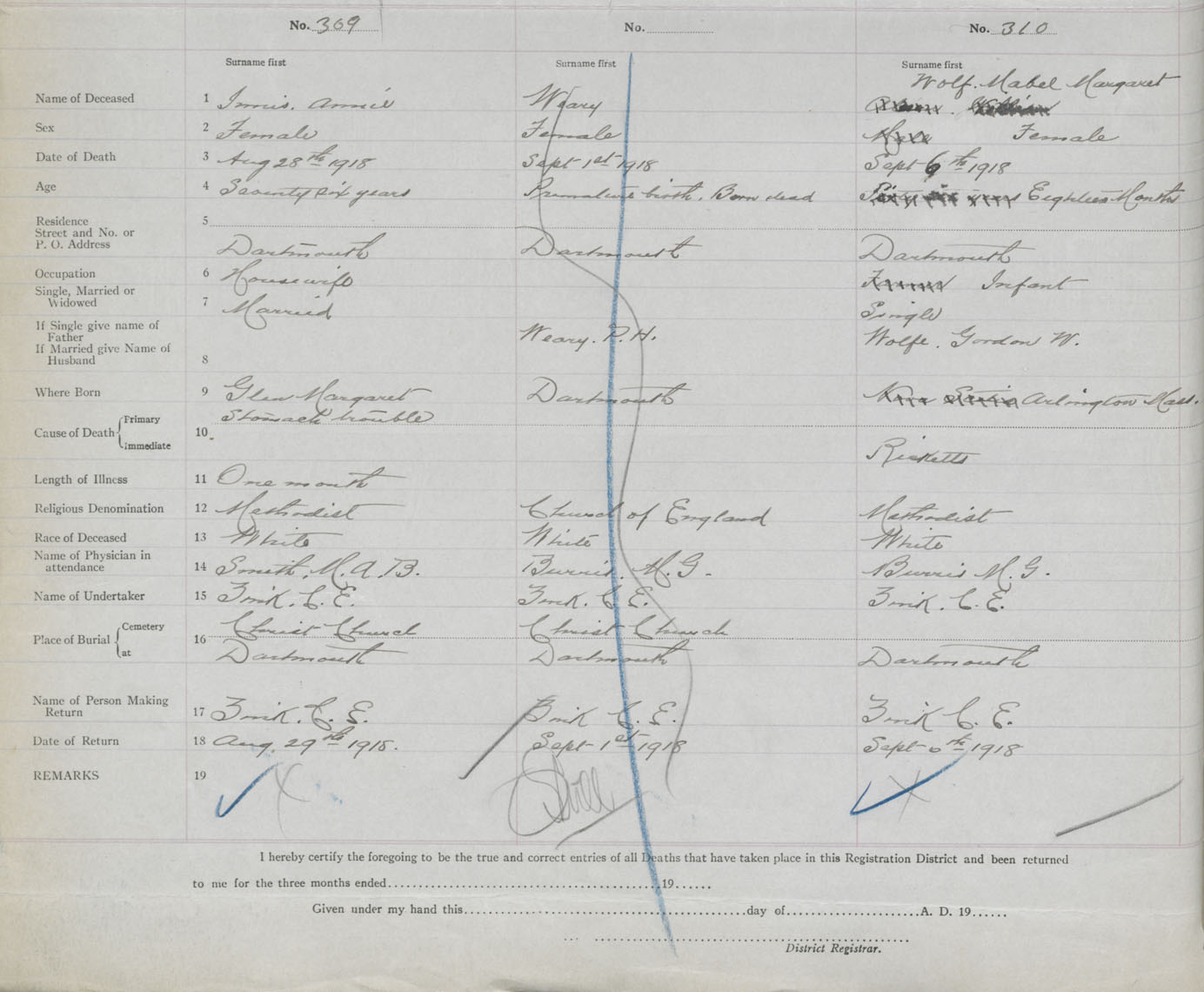 Death Registration: Year: 1918 book: 35 page: 96 number: 310