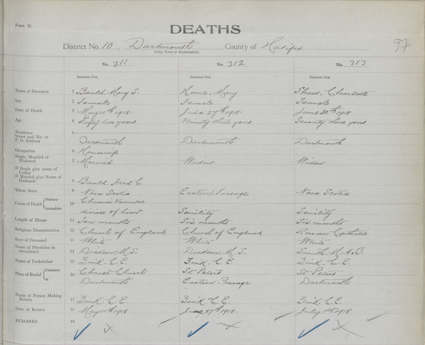 Death Registration: Year: 1918 book: 35 page: 97 number: 313
