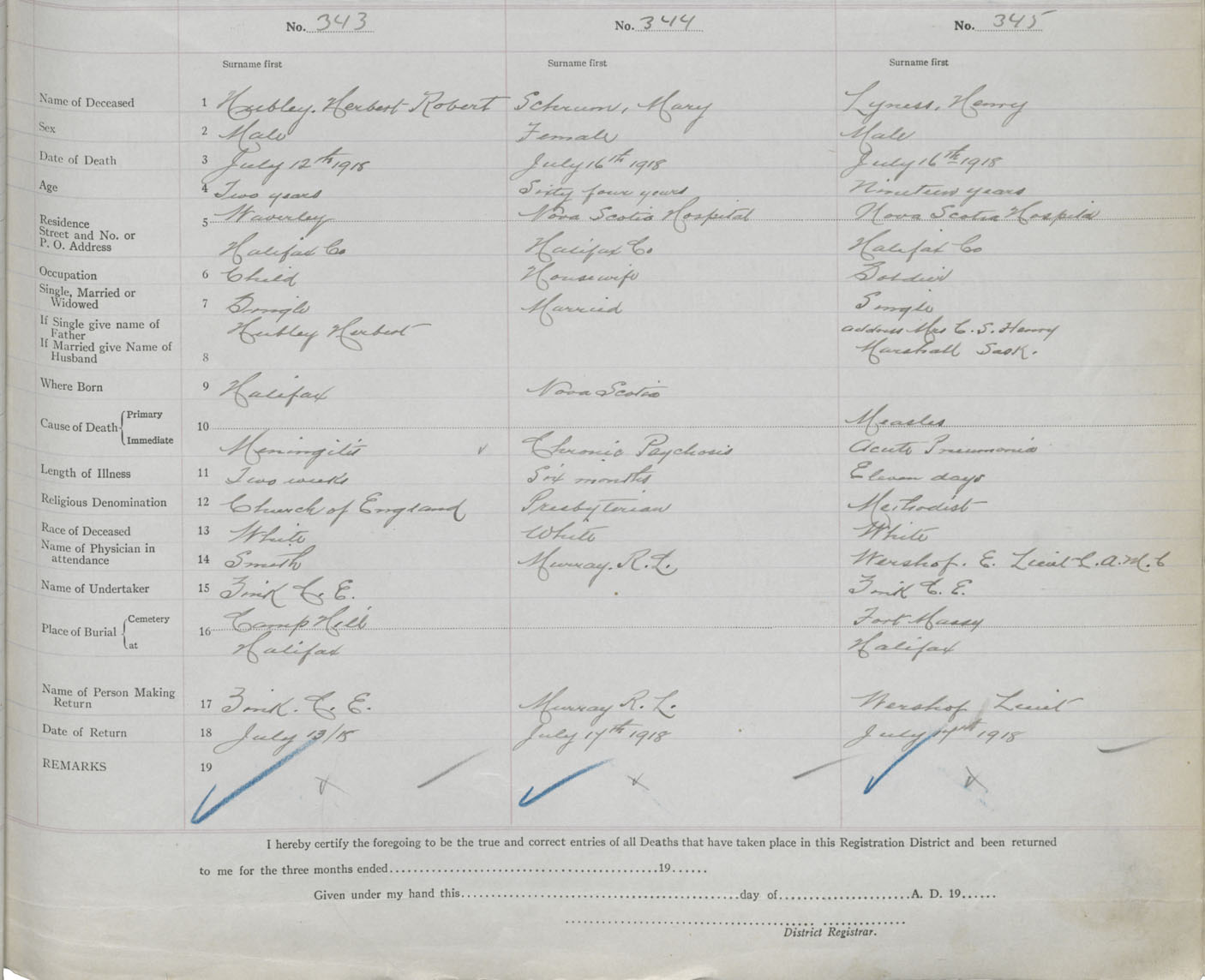Death Registration: Year: 1918 book: 35 page: 103 number: 345