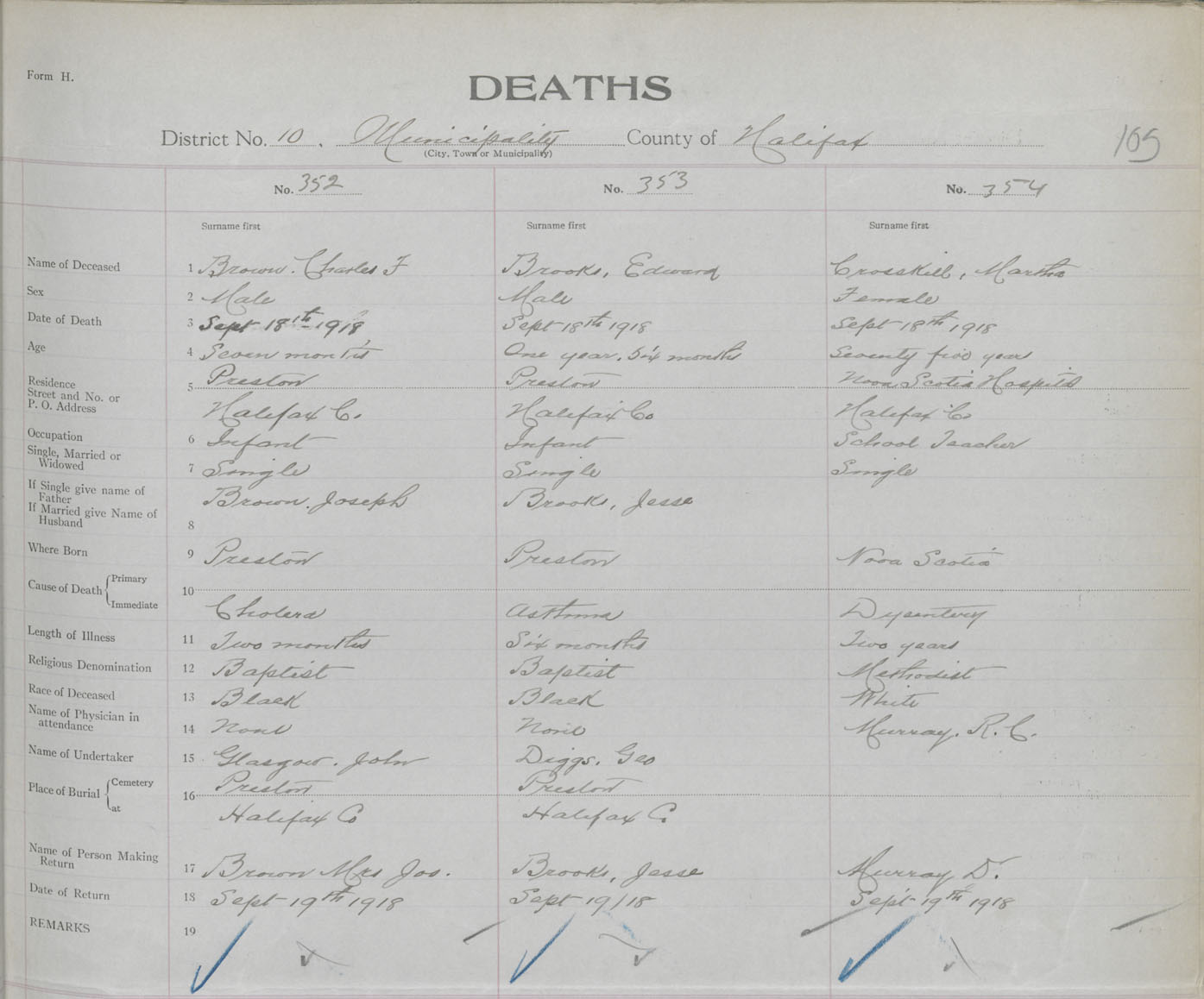 Death Registration: Year: 1918 book: 35 page: 105 number: 354