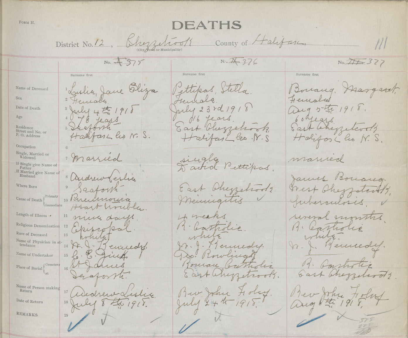Death Registration: Year: 1918 book: 35 page: 111 number: 377