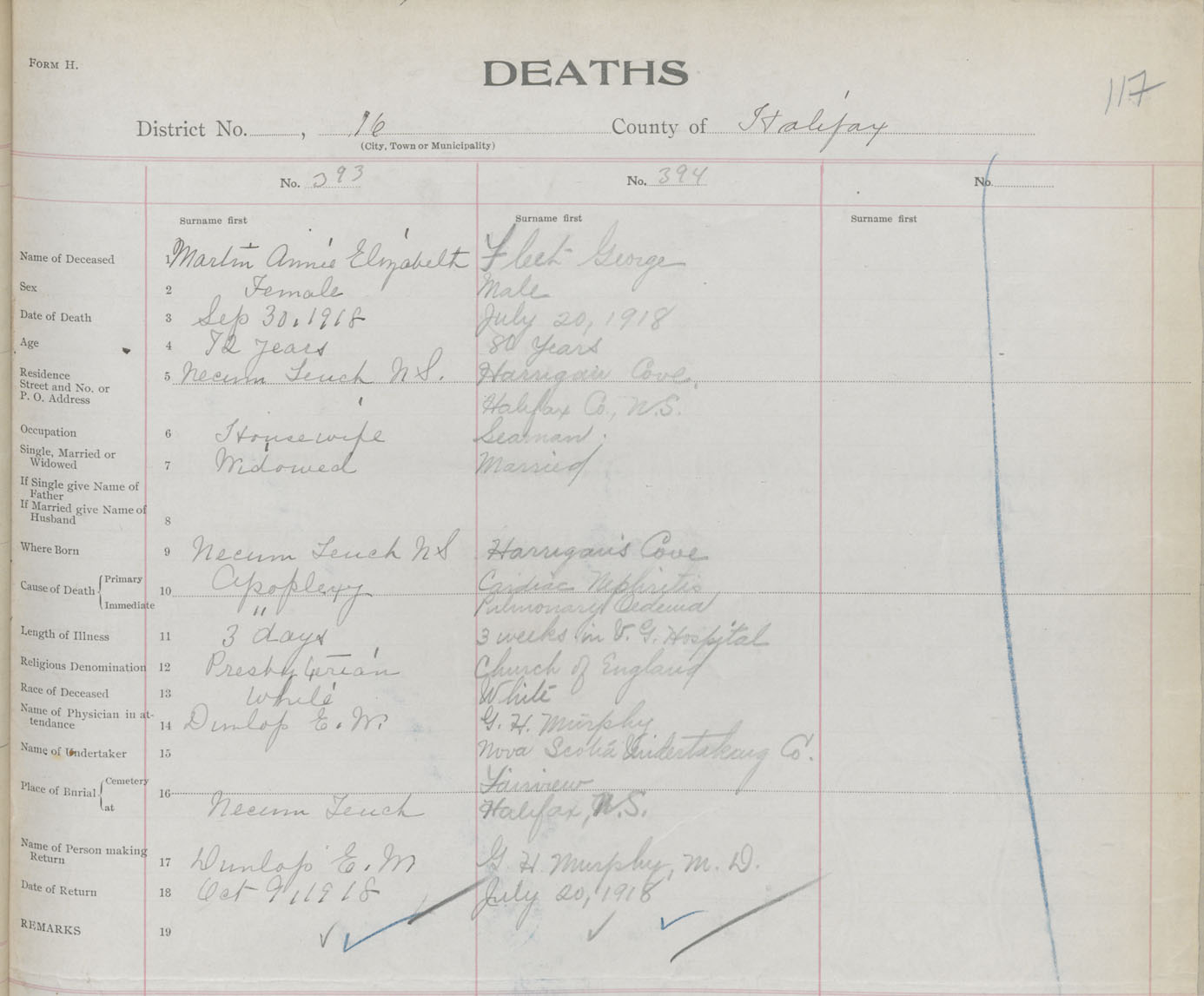 Death Registration: Year: 1918 book: 35 page: 117 number: 394