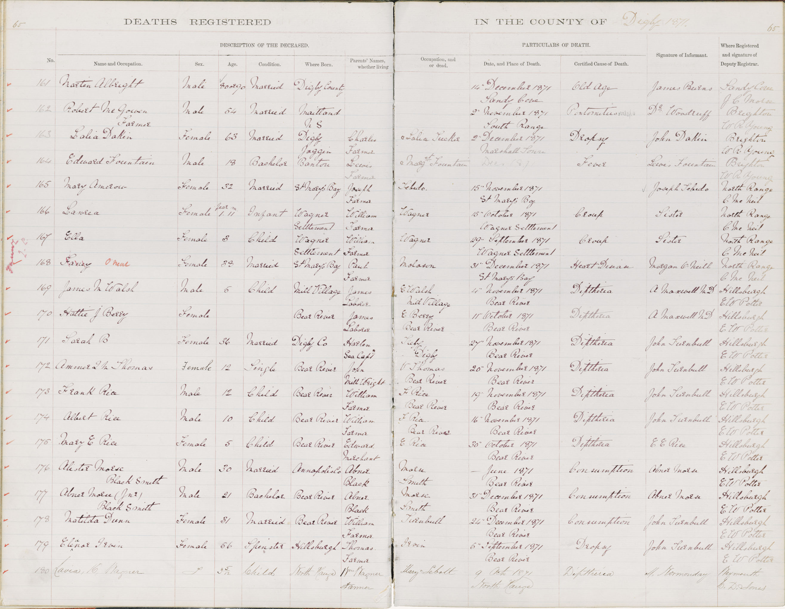 Death Registration: Year: 1871 book: 1806 page: 65 number: 180
