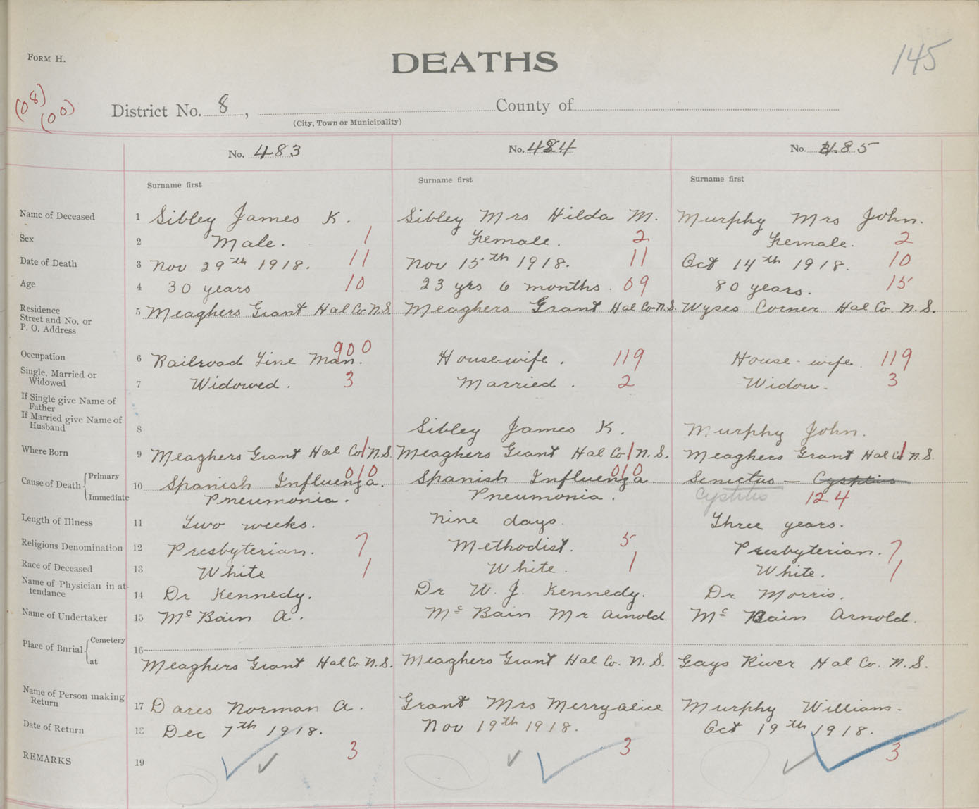 Death Registration: Year: 1918 book: 35 page: 145 number: 485