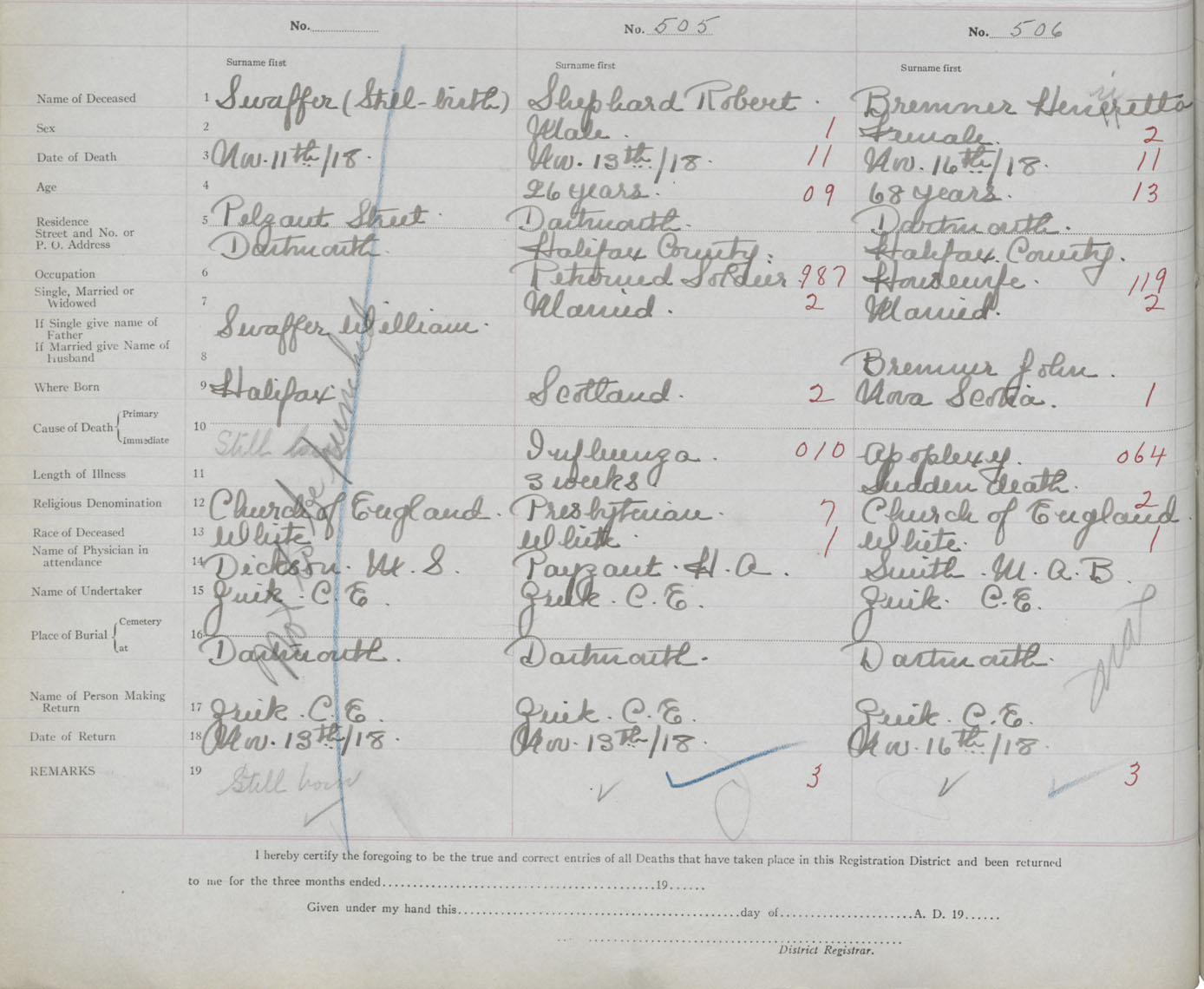 Death Registration: Year: 1918 book: 35 page: 150 number: 506