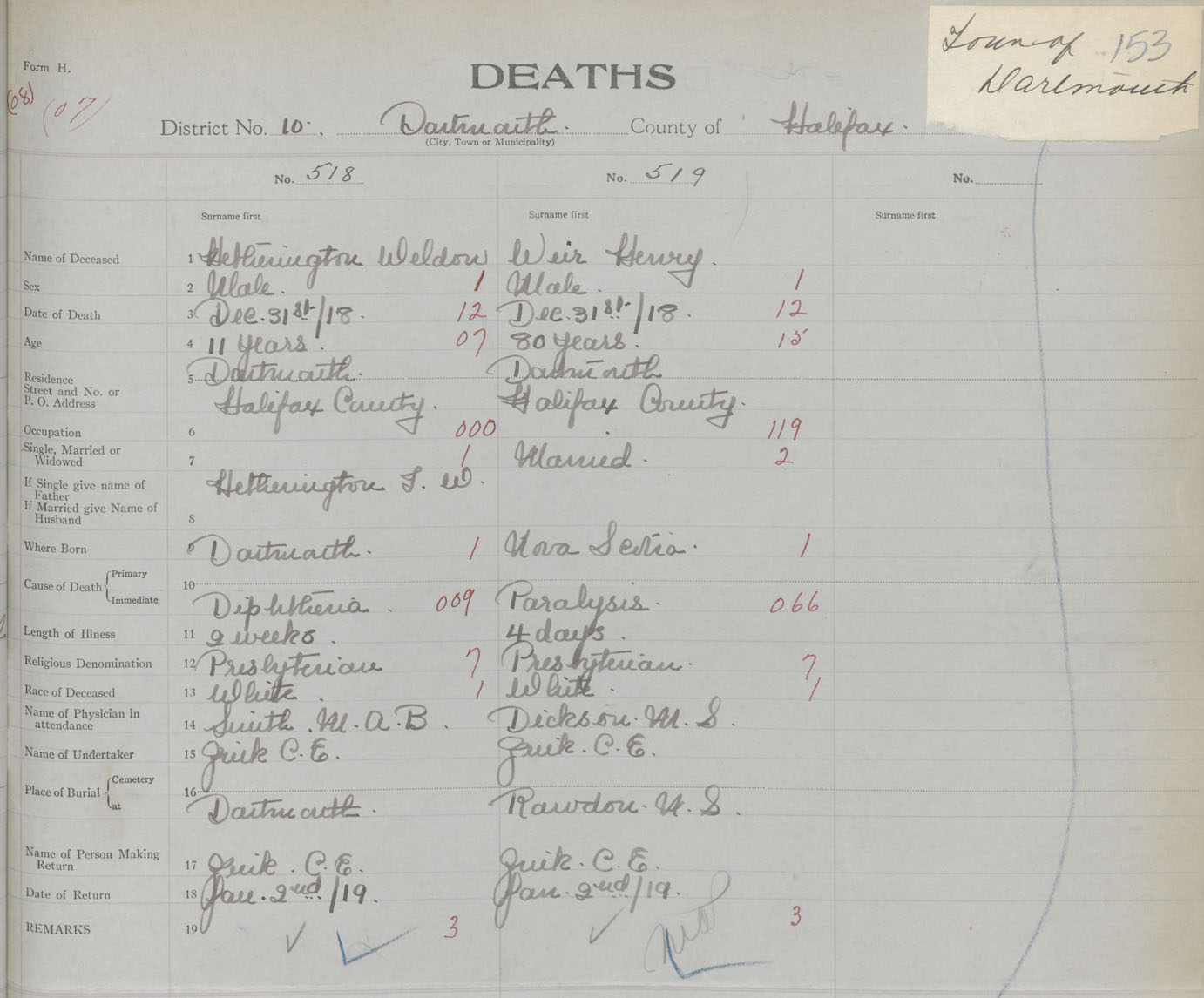 Death Registration: Year: 1918 book: 35 page: 153 number: 519