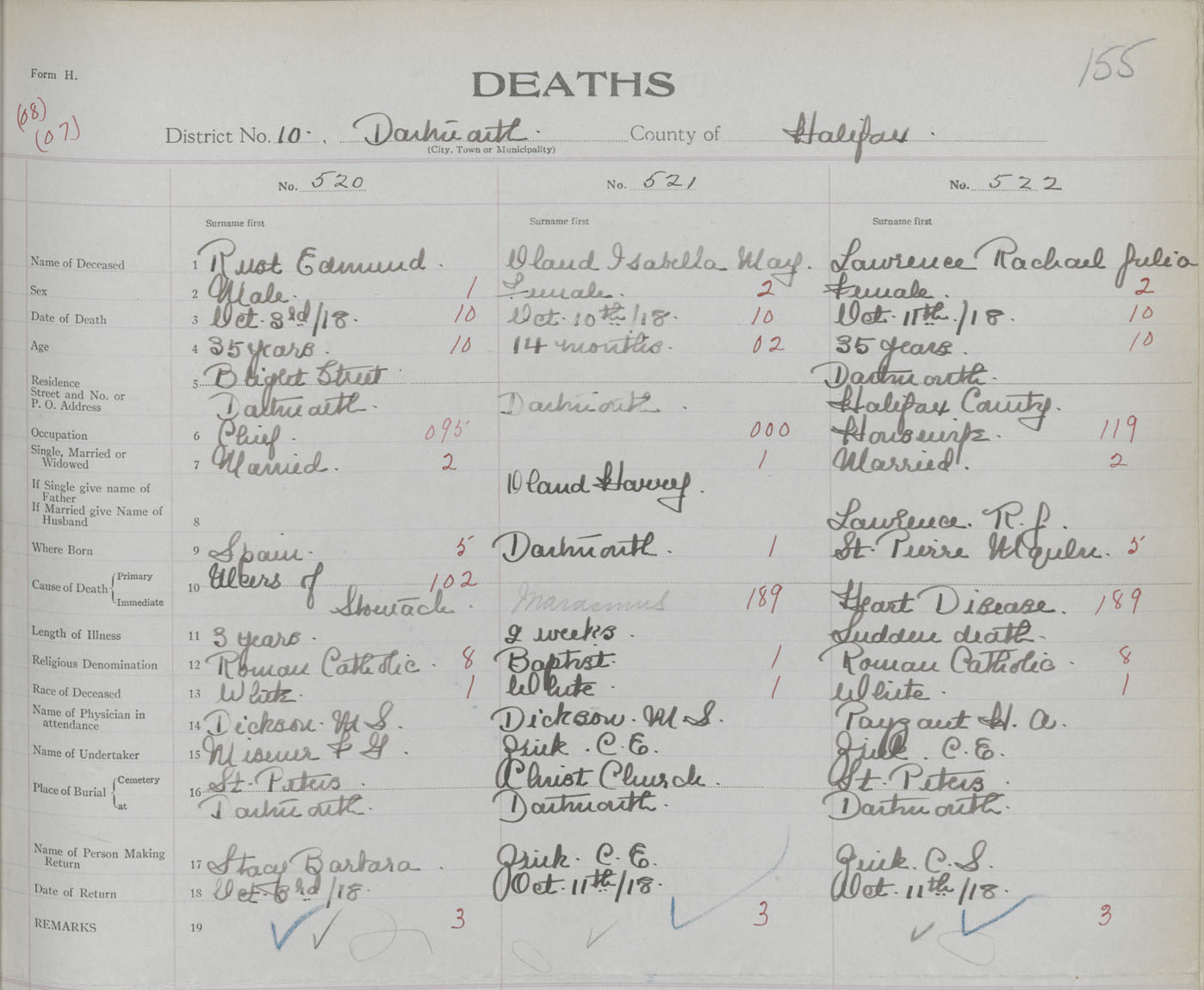 Death Registration: Year: 1918 book: 35 page: 155 number: 522