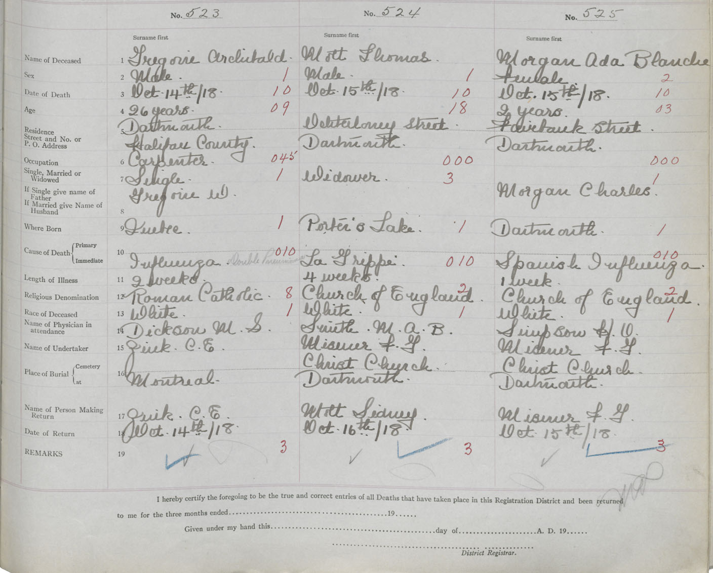 Death Registration: Year: 1918 book: 35 page: 155 number: 525