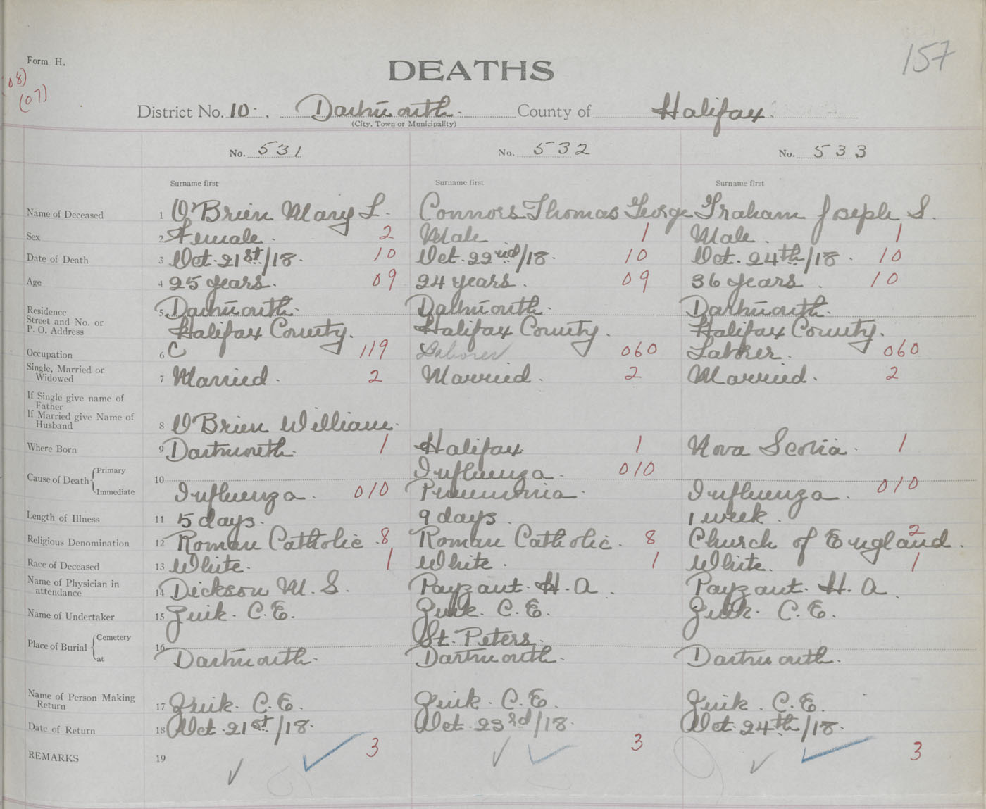 Death Registration: Year: 1918 book: 35 page: 157 number: 533
