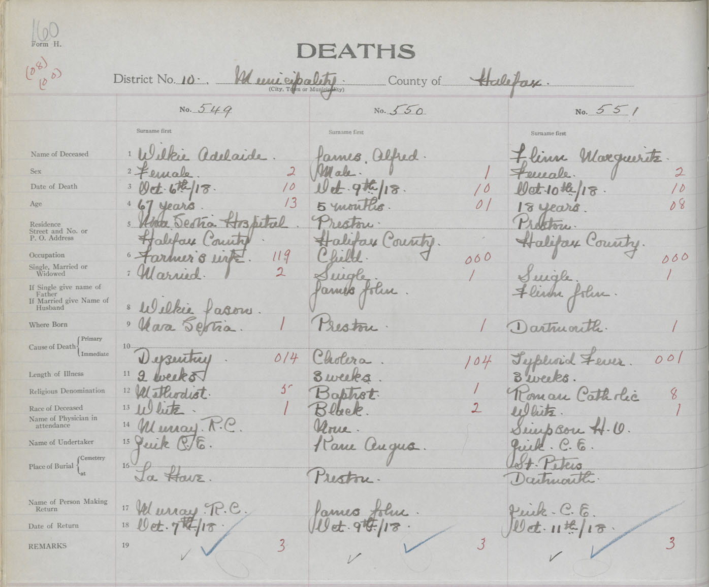 Death Registration: Year: 1918 book: 35 page: 160 number: 551