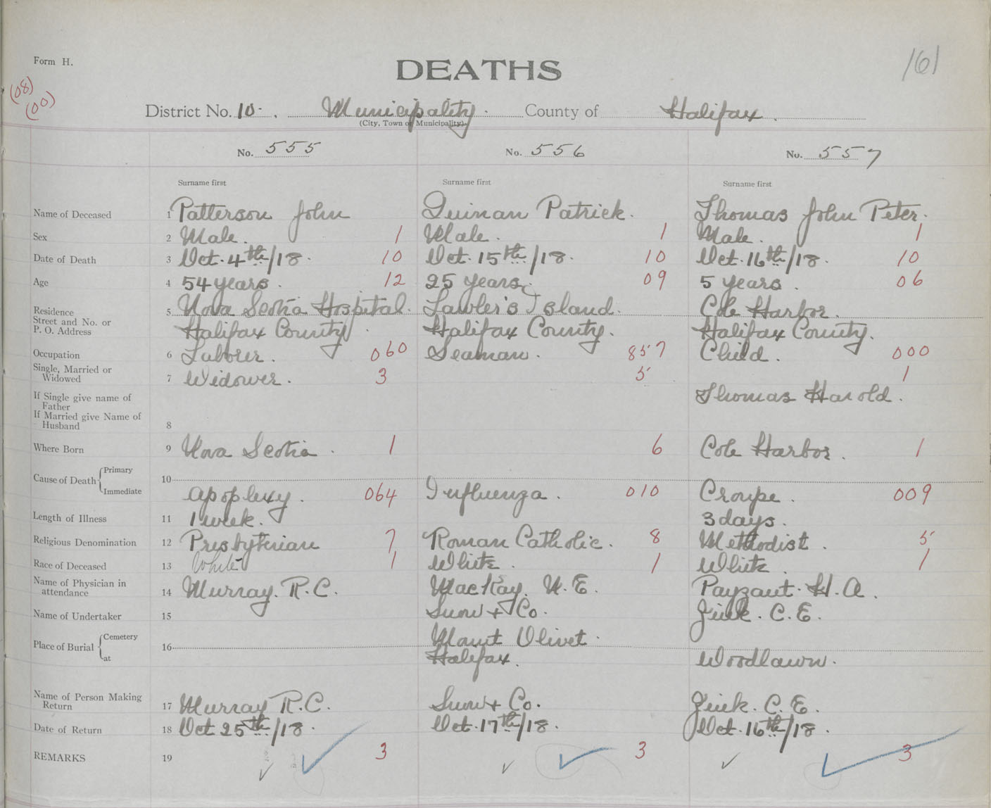 Death Registration: Year: 1918 book: 35 page: 161 number: 557
