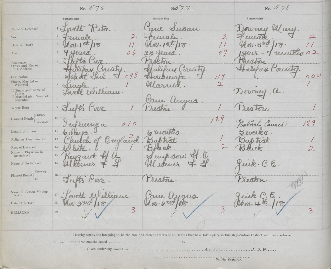 Death Registration: Year: 1918 book: 35 page: 164 number: 578