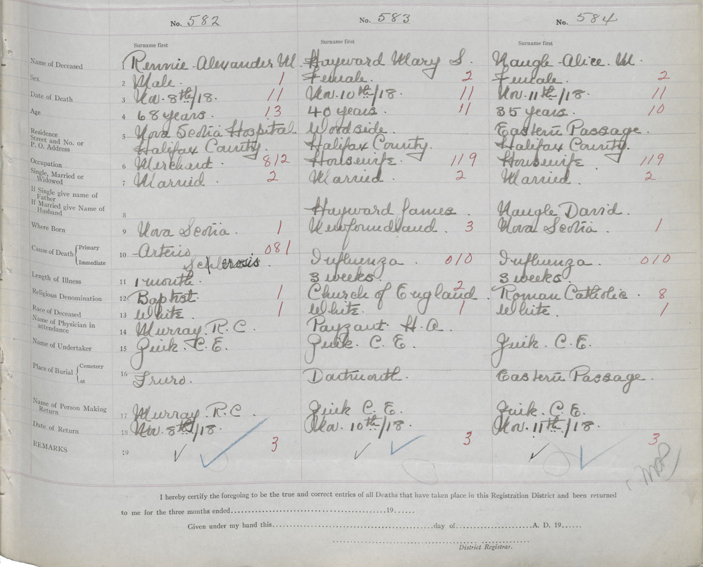 Death Registration: Year: 1918 book: 35 page: 165 number: 584
