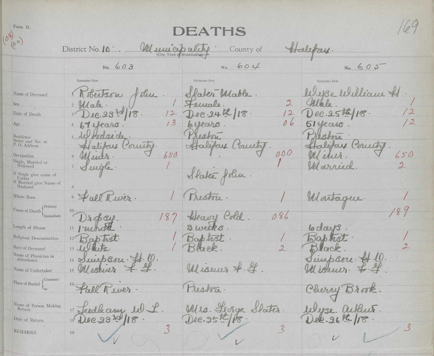 Death Registration: Year: 1918 book: 35 page: 169 number: 605