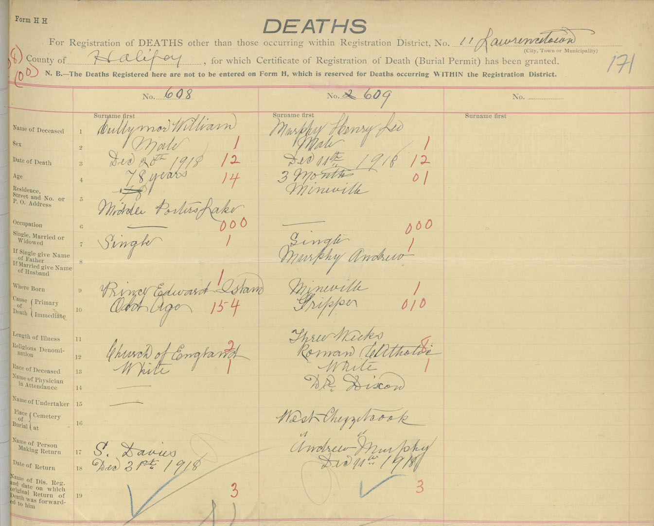 Death Registration: Year: 1918 book: 35 page: 171 number: 609