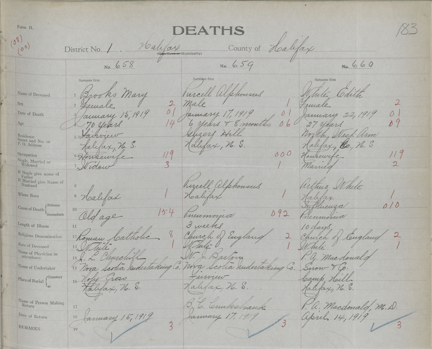 Death Registration: Year: 1919 book: 35 page: 183 number: 658