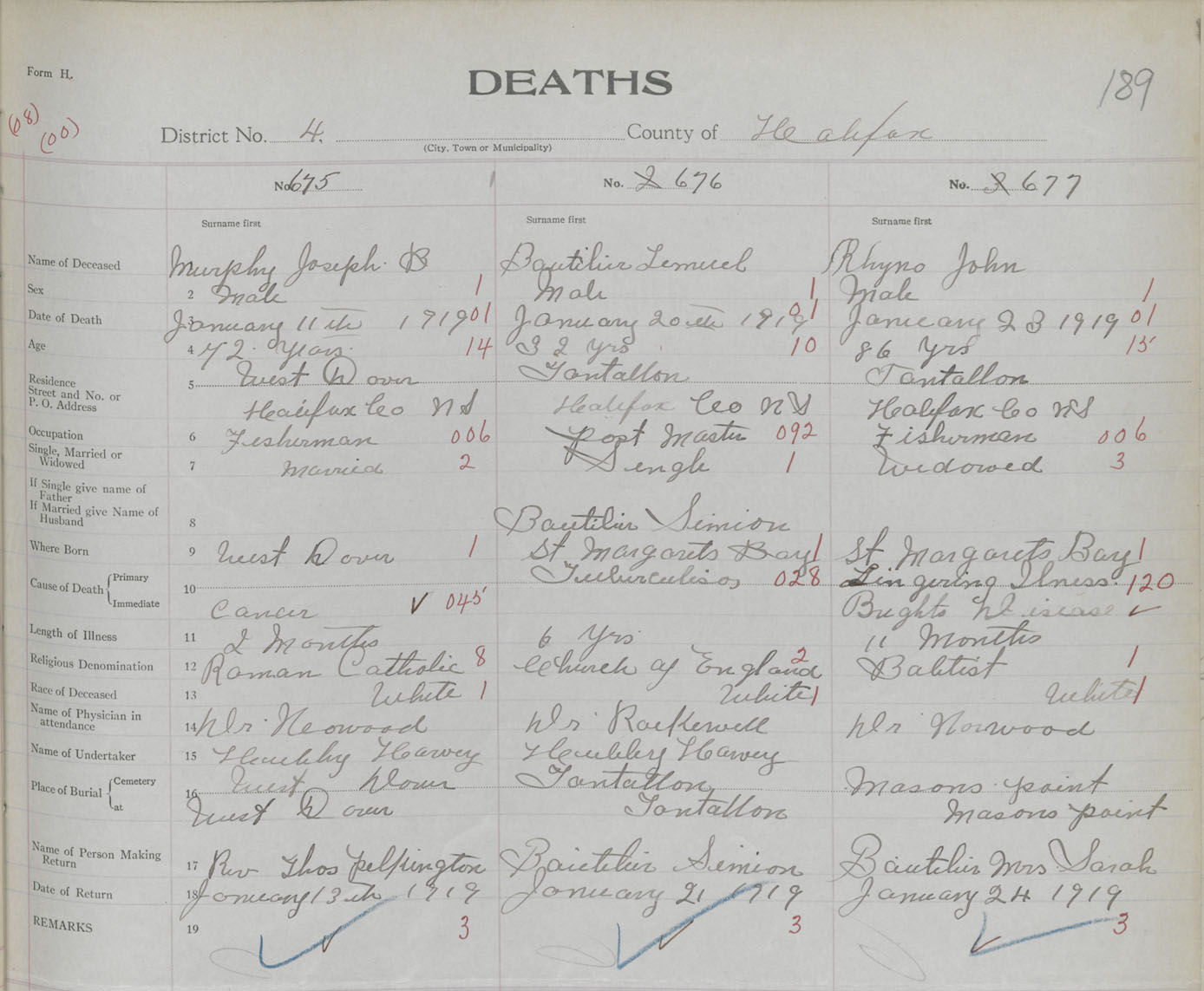 Death Registration: Year: 1919 book: 35 page: 189 number: 675