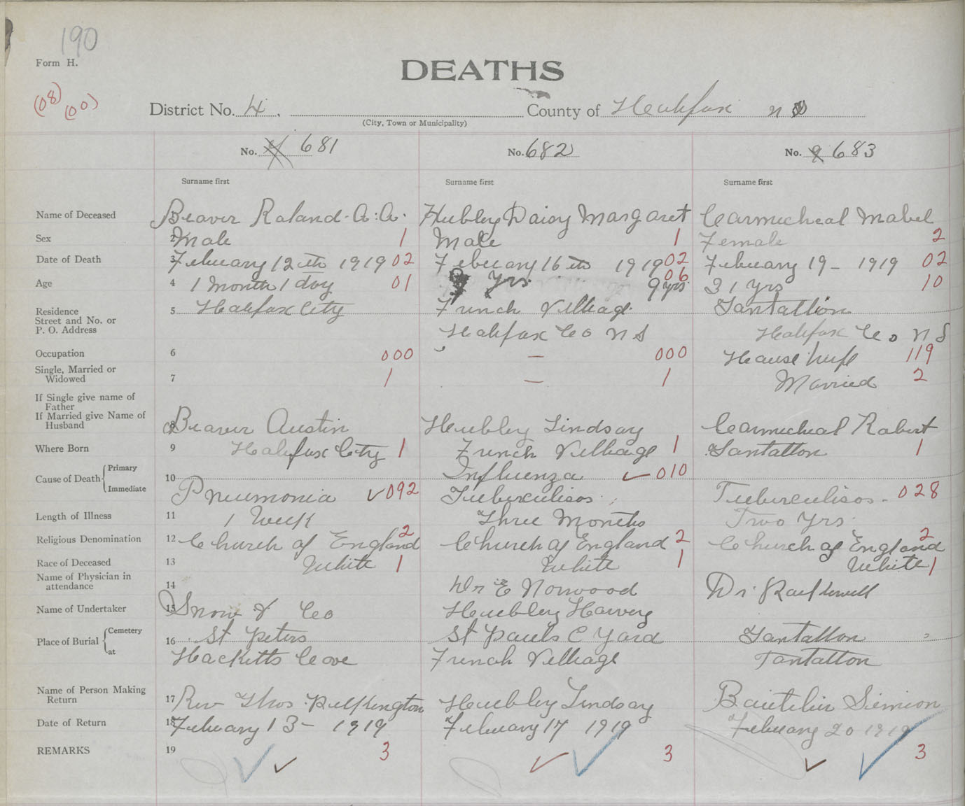 Death Registration: Year: 1919 book: 35 page: 190 number: 681