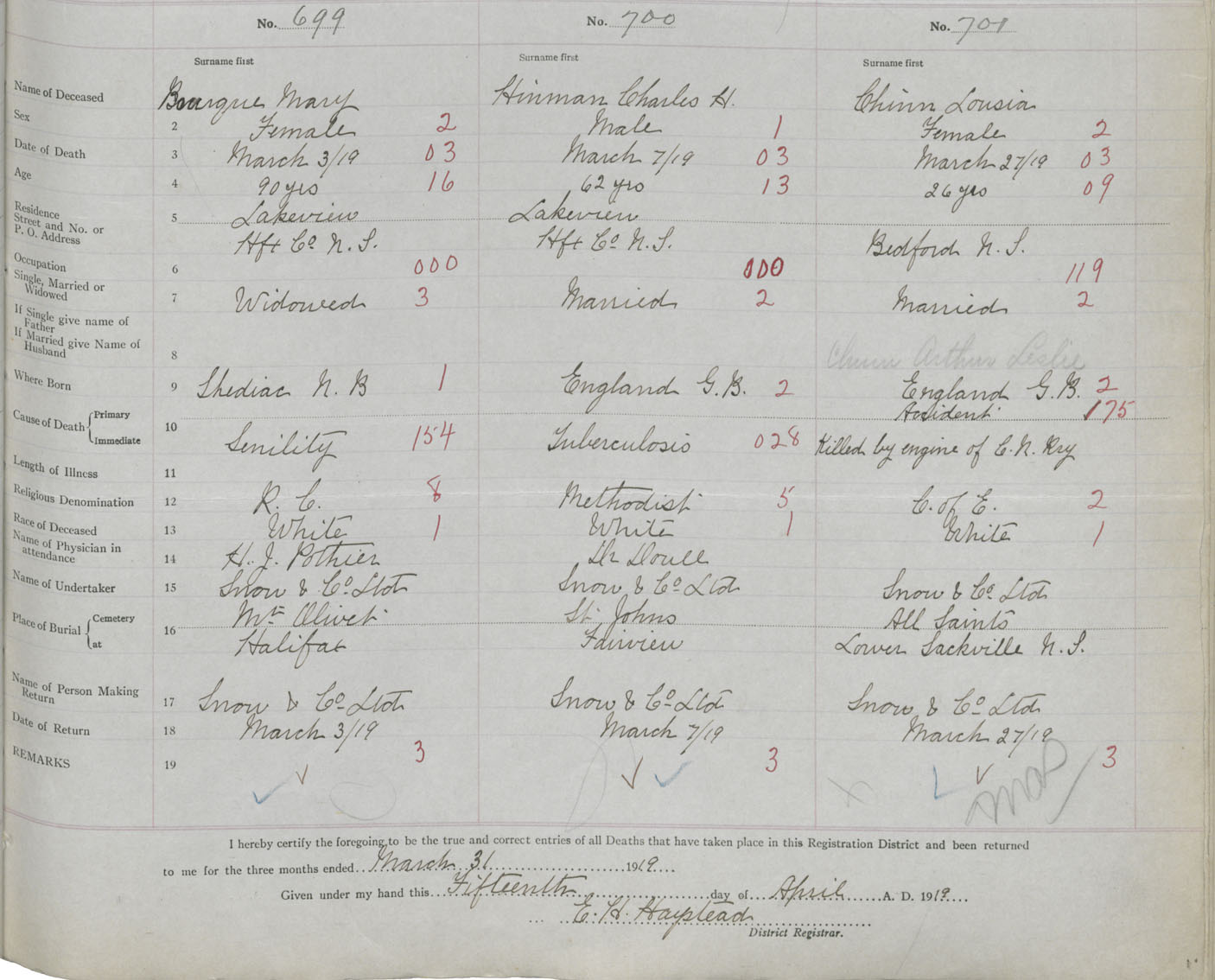 Death Registration: Year: 1919 book: 35 page: 193 number: 699
