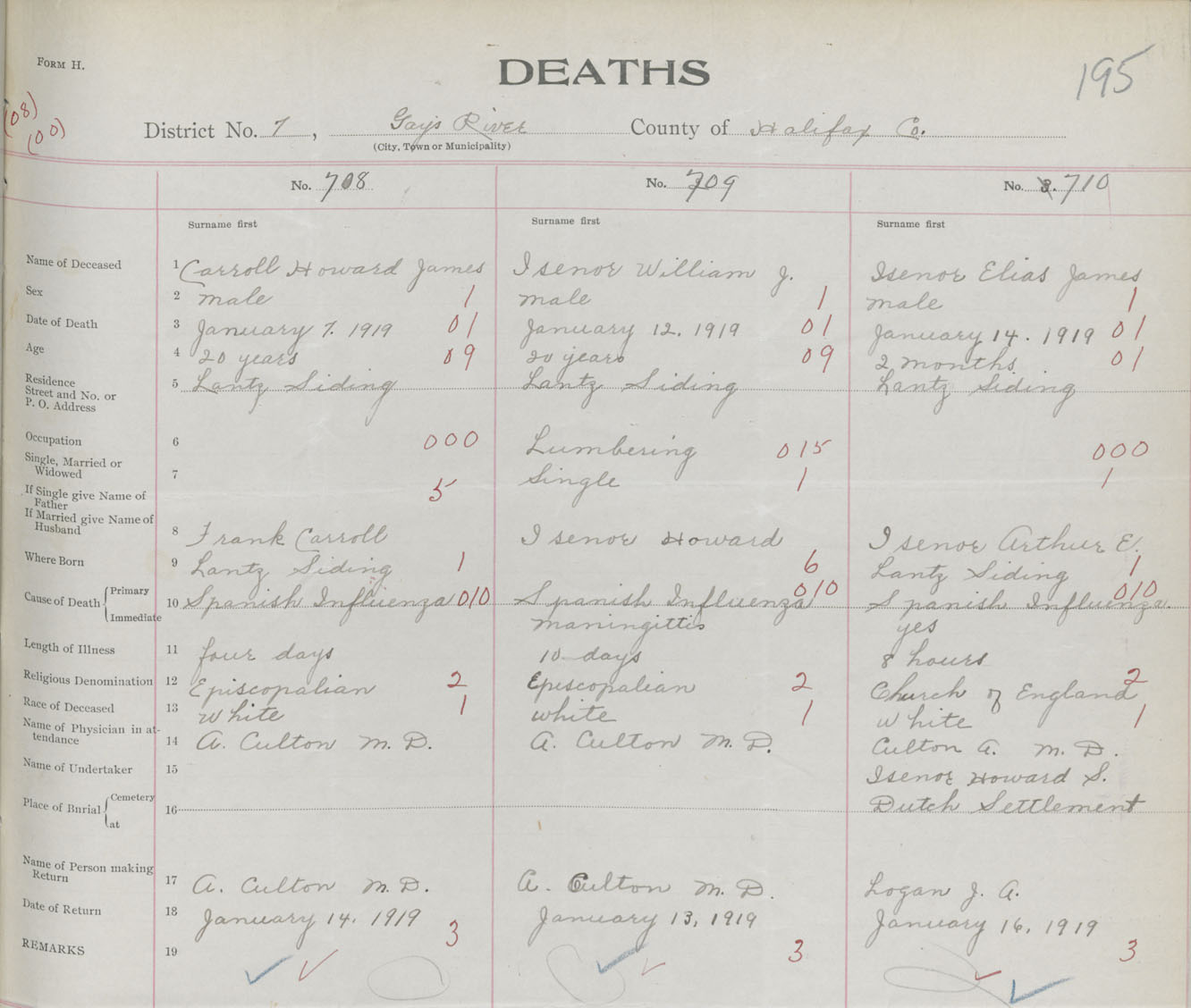 Death Registration: Year: 1919 book: 35 page: 195 number: 708