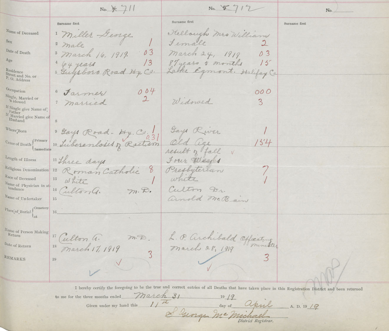 Death Registration: Year: 1919 book: 35 page: 195 number: 711
