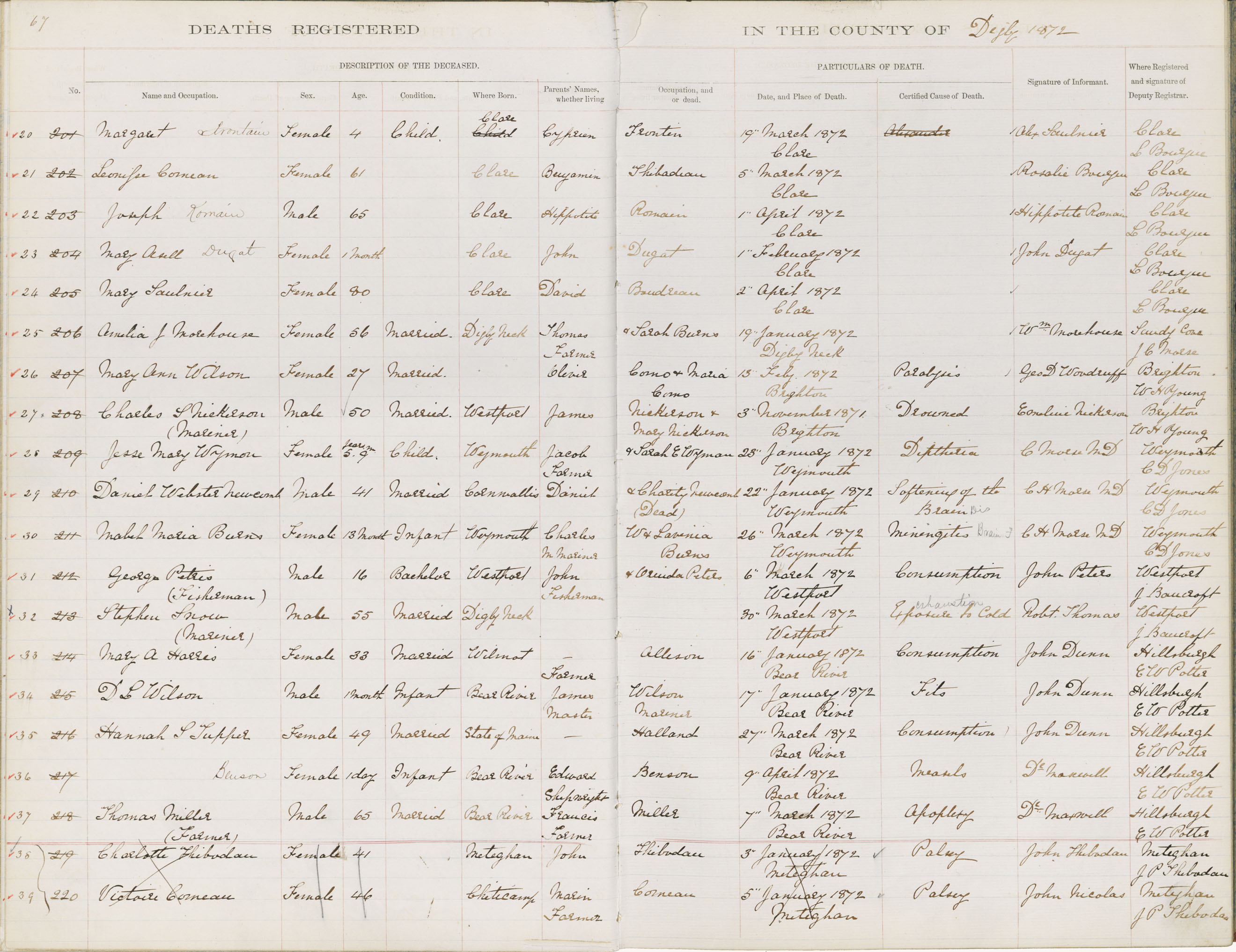 Death Registration: Year: 1872 book: 1806 page: 67 number: 25