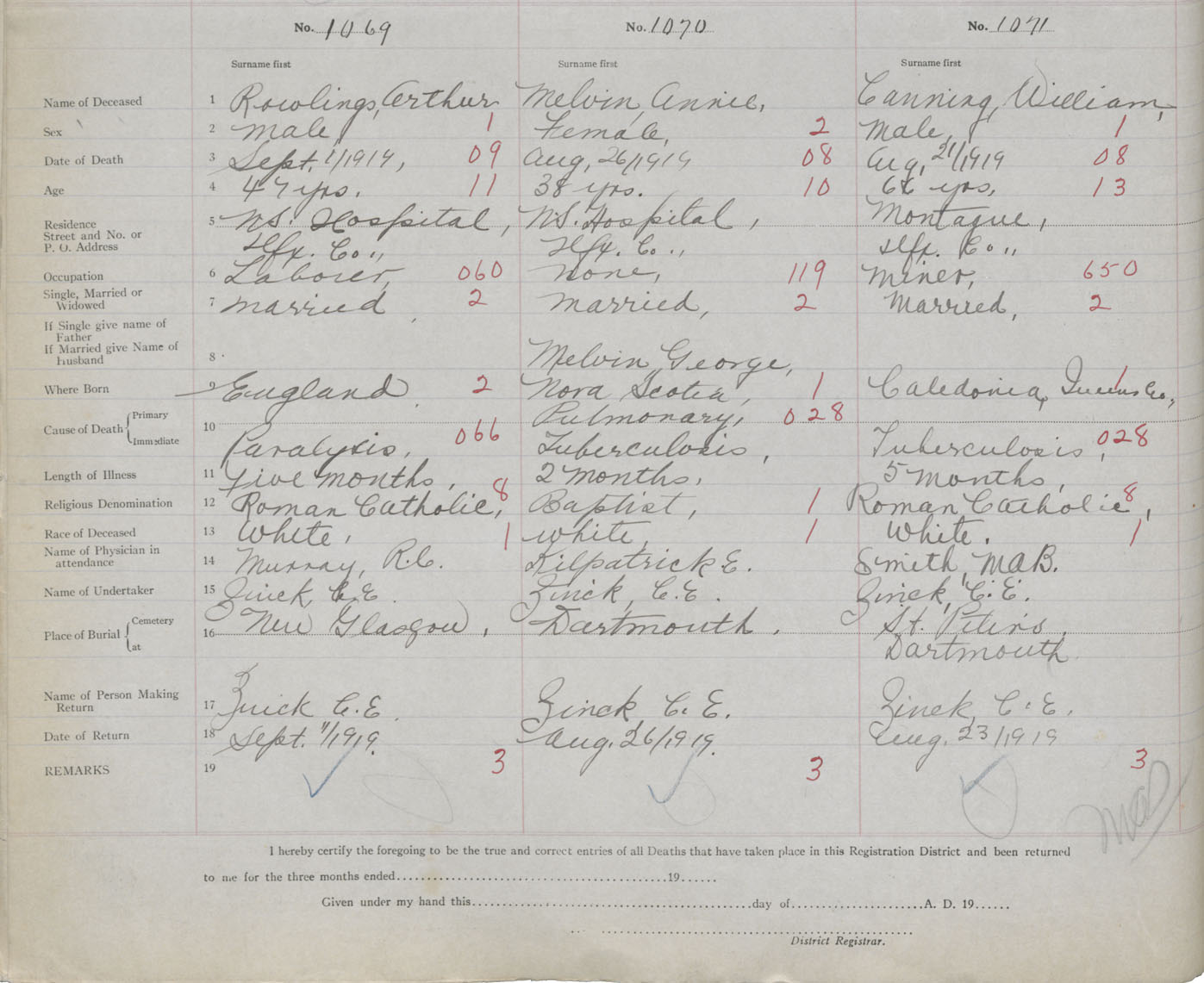 Death Registration: Year: 1919 book: 35 page: 304 number: 1069