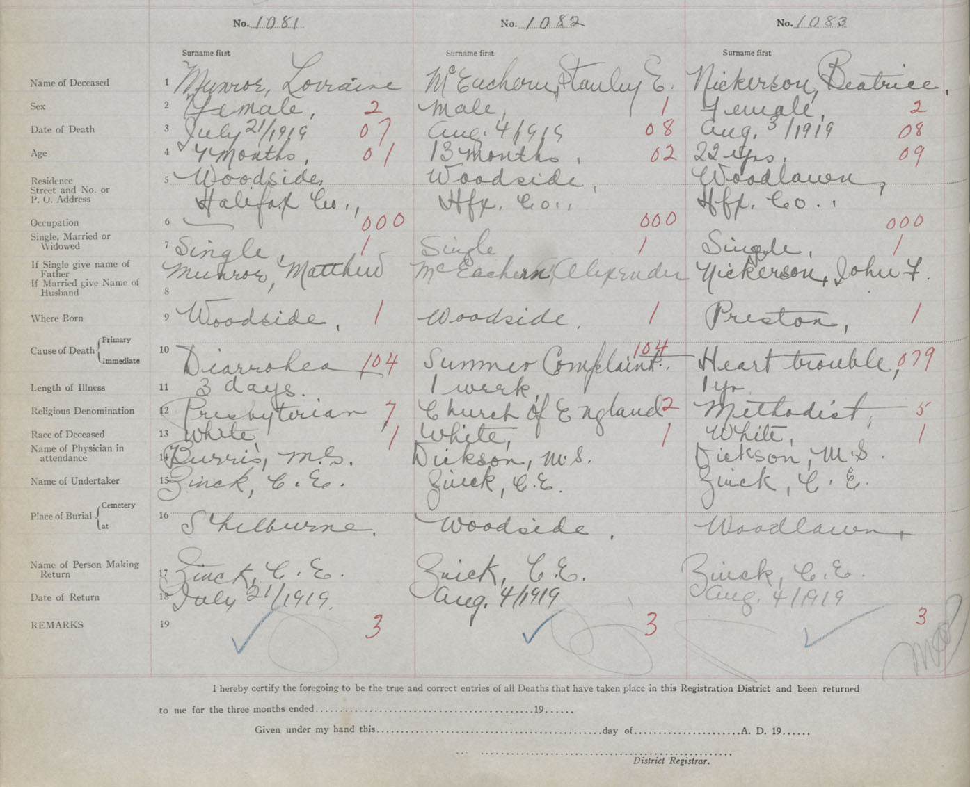 Death Registration: Year: 1919 book: 35 page: 306 number: 1081