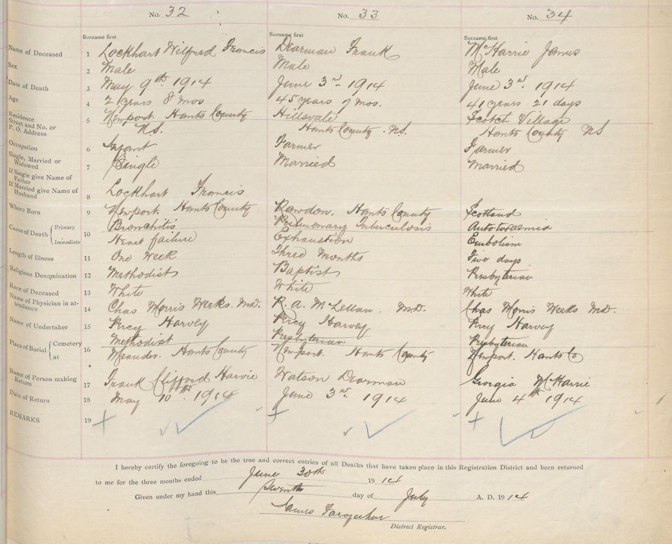 Male Death Registration: Year: 1914 book: 35 page: 327 number: 34