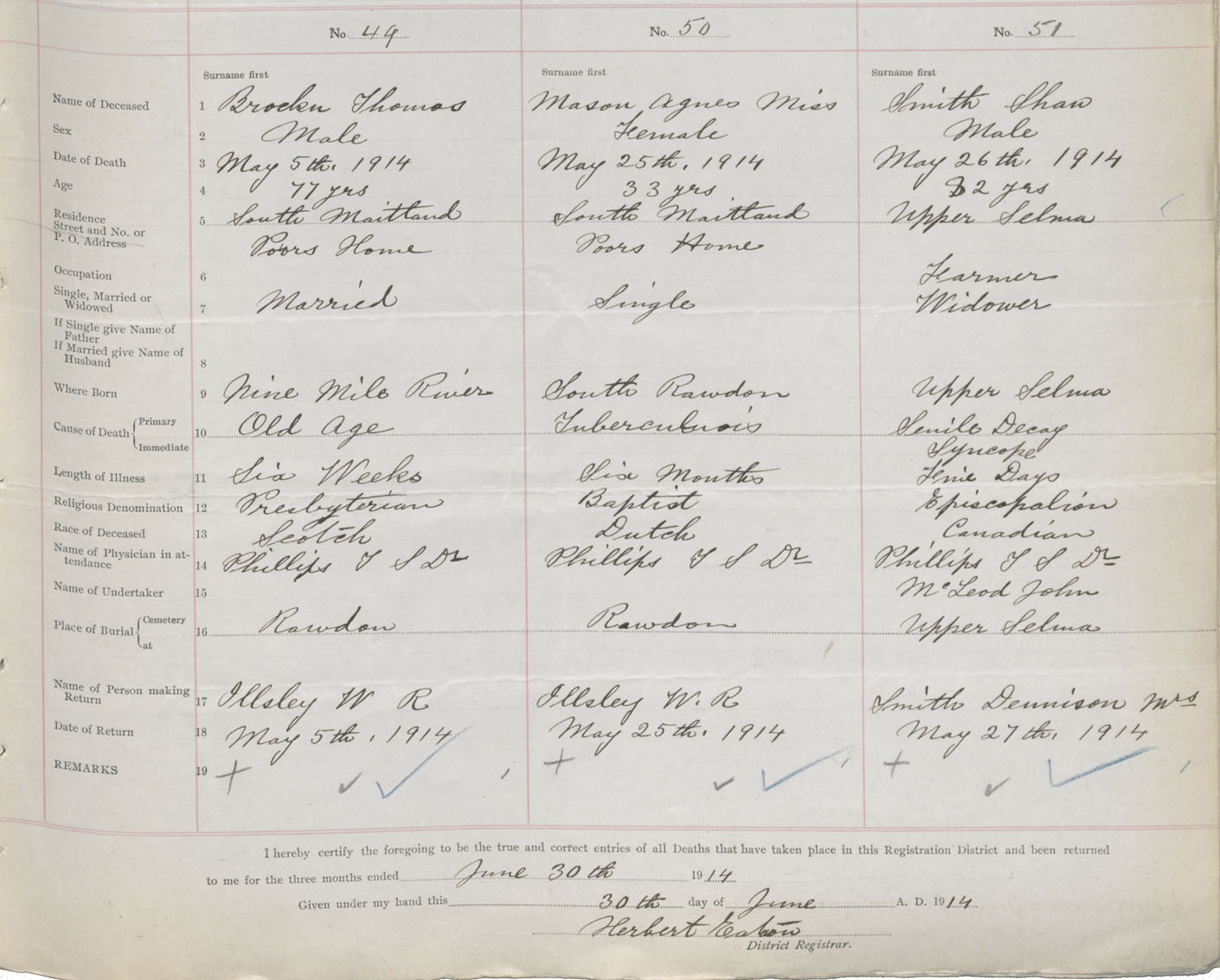 Male Death Registration: Year: 1914 book: 35 page: 335 number: 51