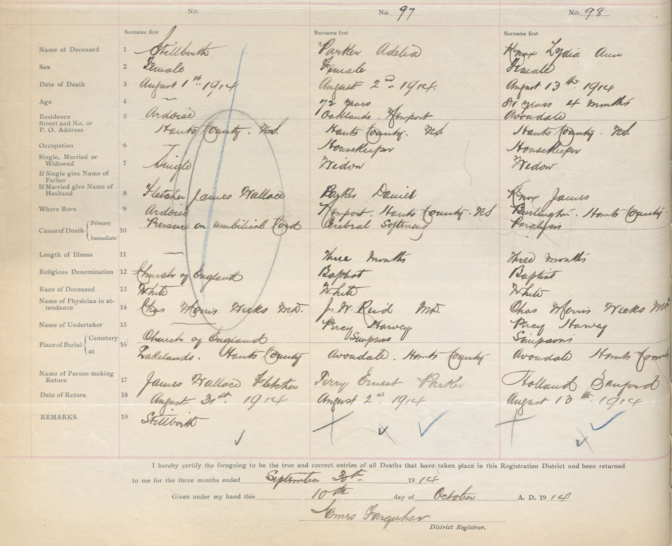 Female Death Registration: Year: 1914 book: 35 page: 360 number: 98