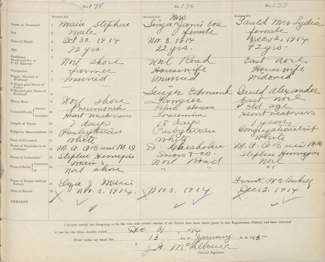 Male Death Registration: Year: 1914 book: 35 page: 399 number: 175