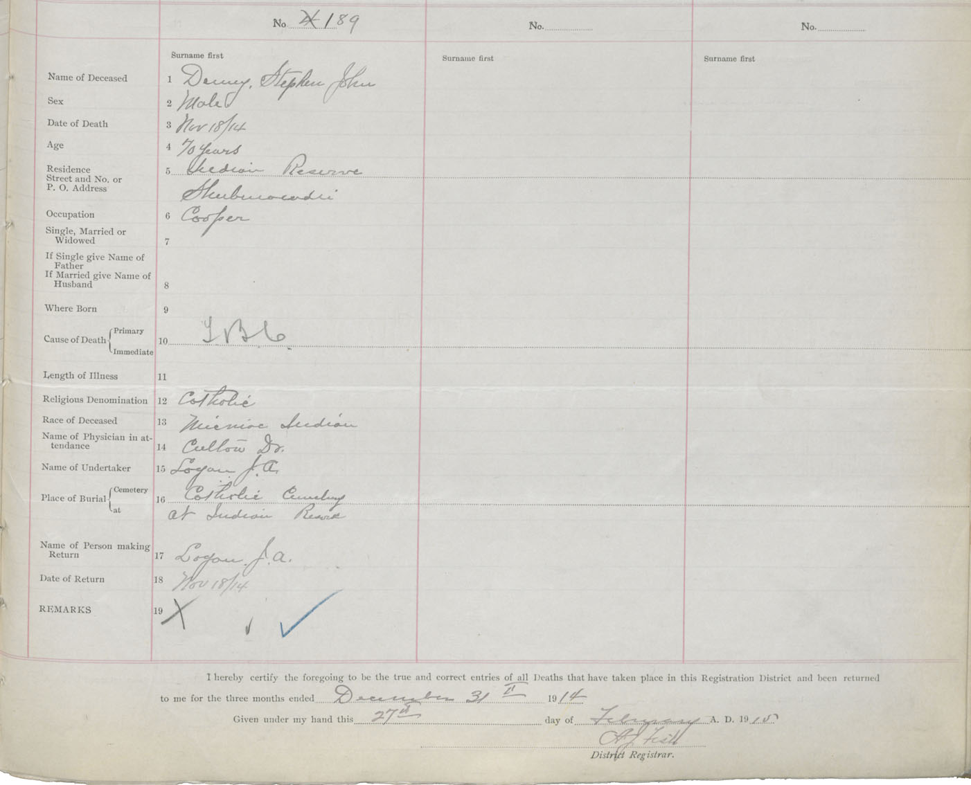 Male Death Registration: Year: 1914 book: 35 page: 403 number: 189