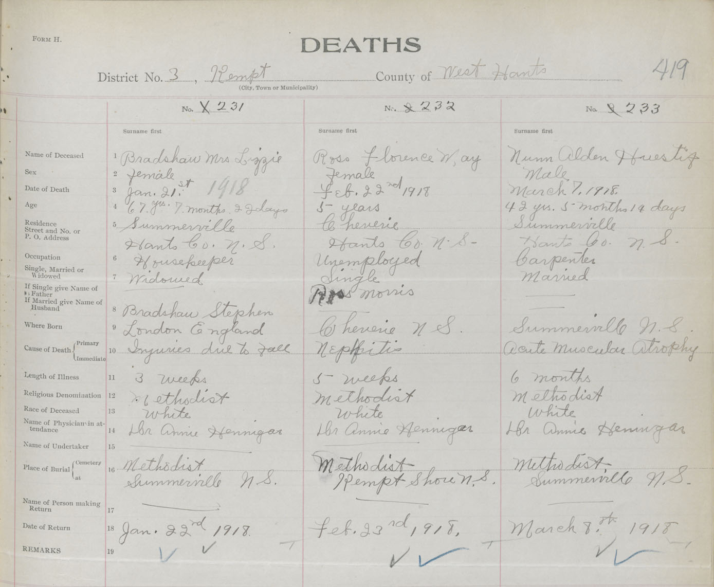 Male Death Registration: Year: 1918 book: 35 page: 419 number: 233