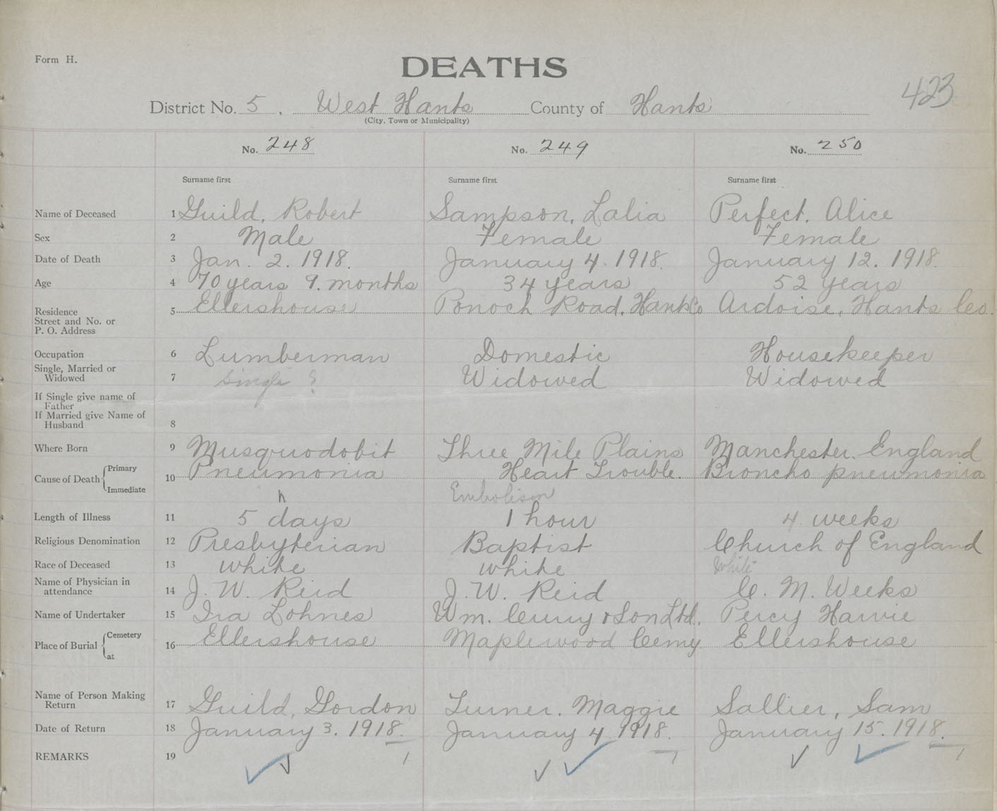 Female Death Registration: Year: 1917 book: 35 page: 423 number: 250