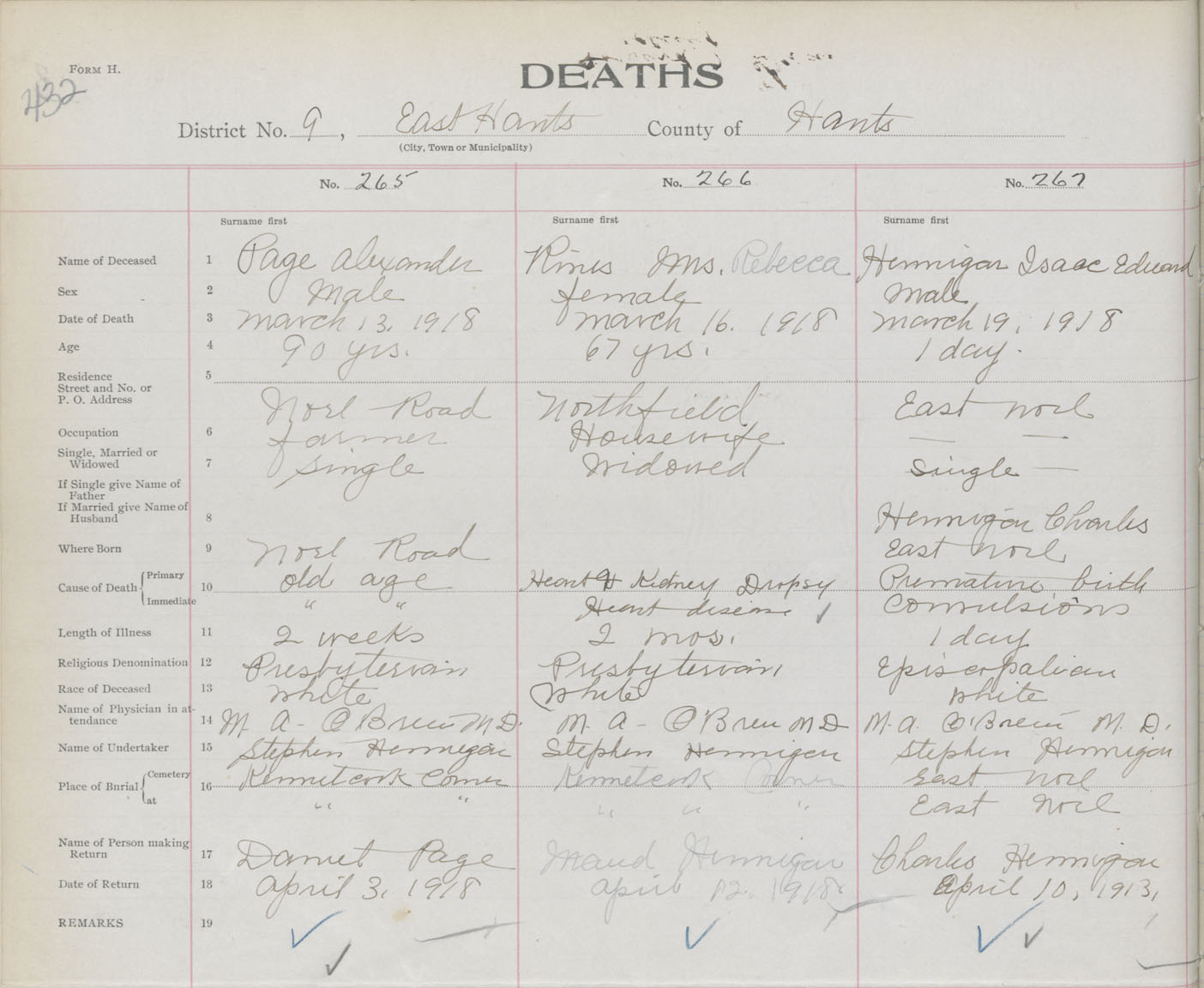 Male Death Registration: Year: 1918 book: 35 page: 432 number: 267