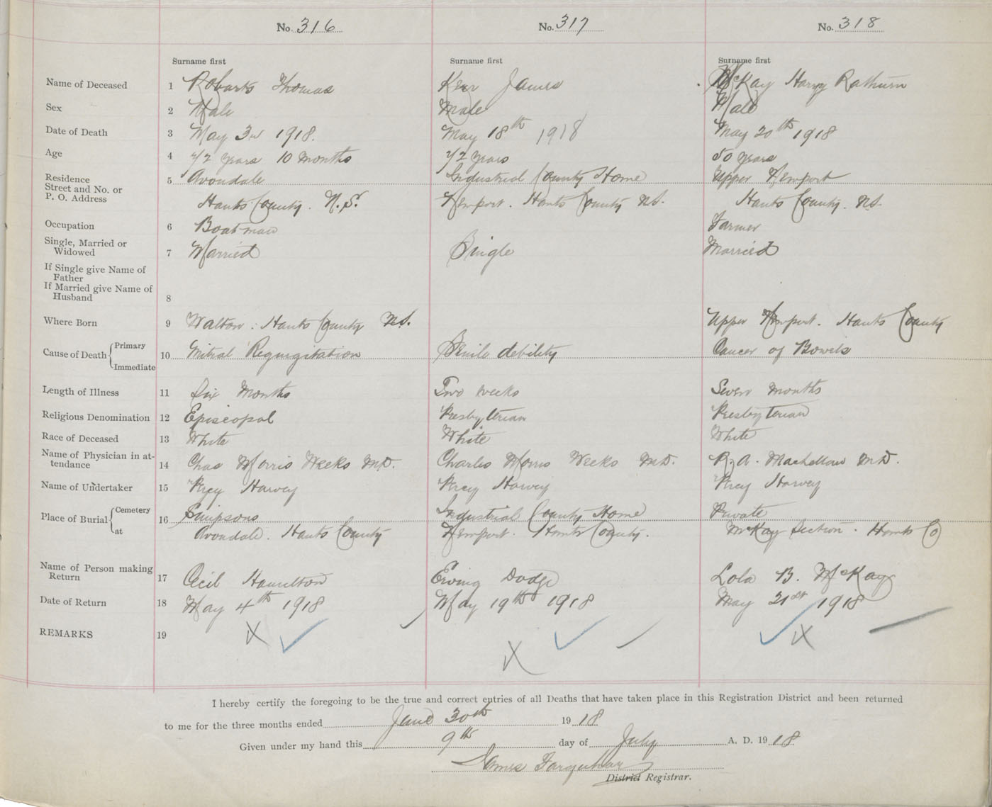 Male Death Registration: Year: 1918 book: 35 page: 453 number: 316