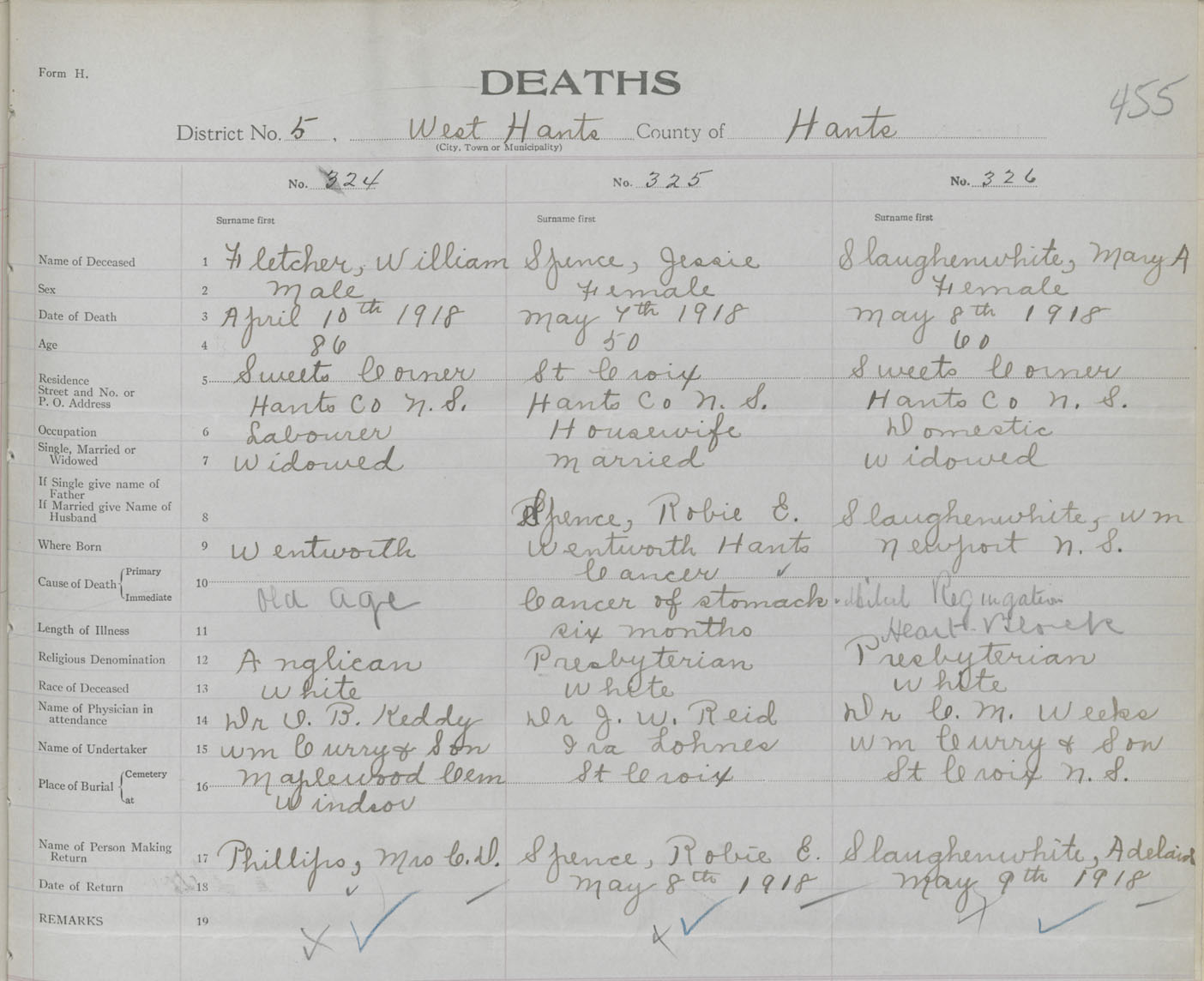Male Death Registration: Year: 1918 book: 35 page: 455 number: 324