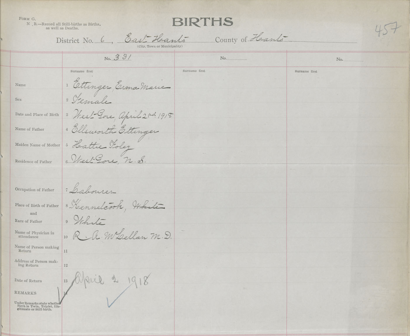 Female Death Registration: Year: 1918 book: 35 page: 457 number: 331