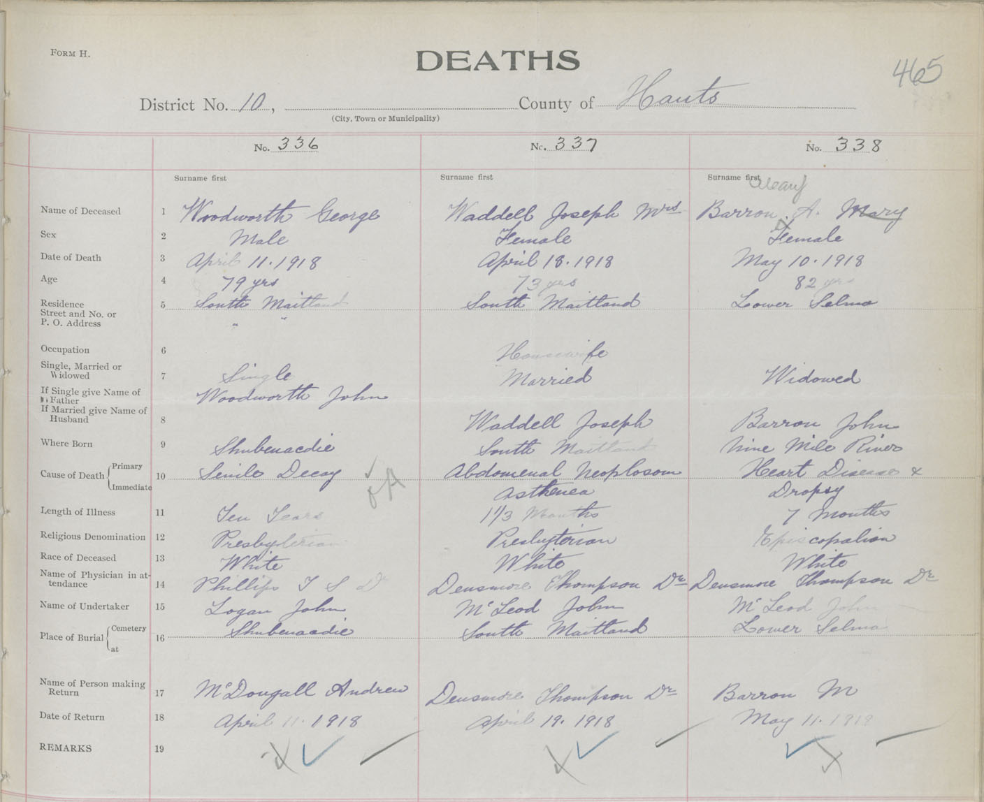 Male Death Registration: Year: 1918 book: 35 page: 465 number: 336