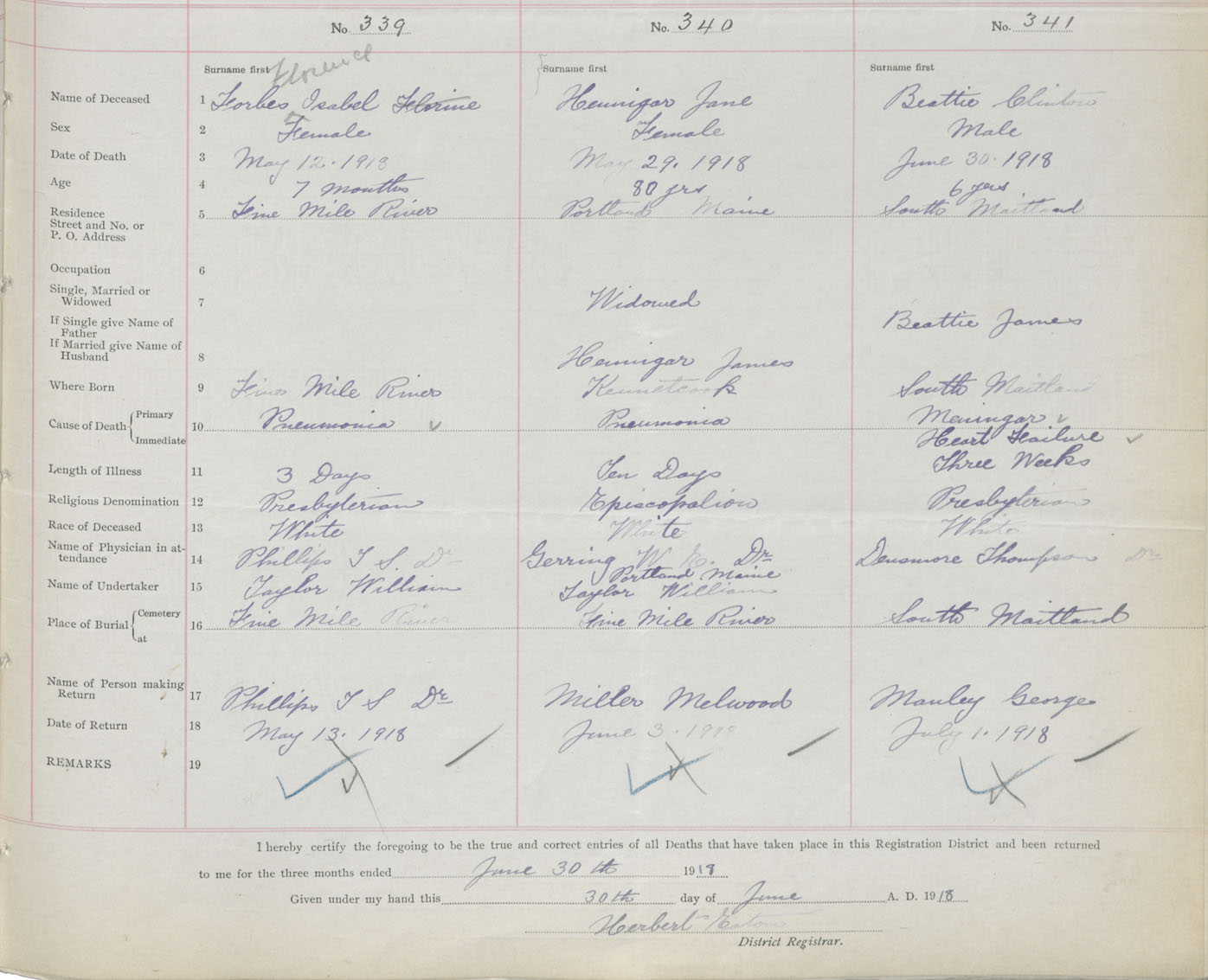 Female Death Registration: Year: 1918 book: 35 page: 465 number: 339