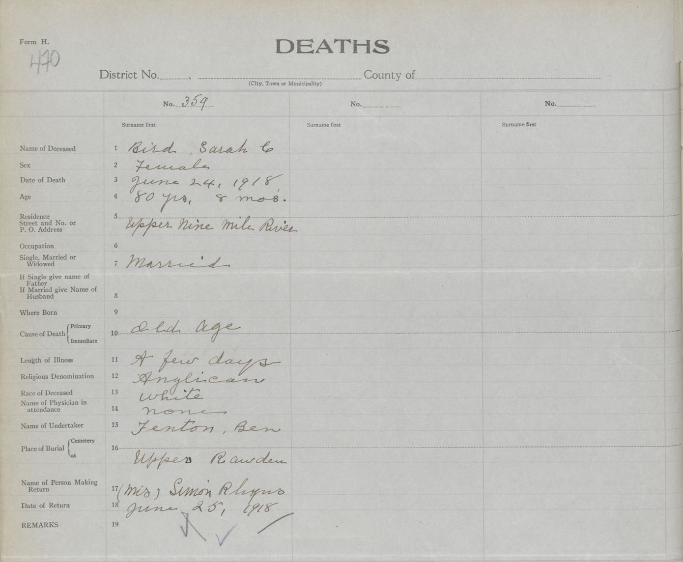 Female Death Registration: Year: 1918 book: 35 page: 470 number: 359