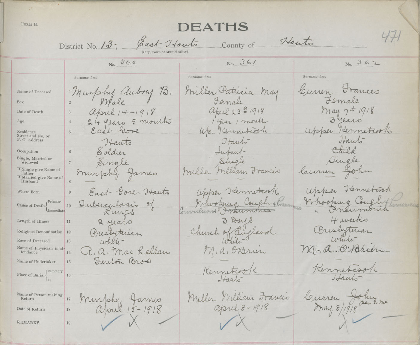 Female Death Registration: Year: 1918 book: 35 page: 471 number: 360