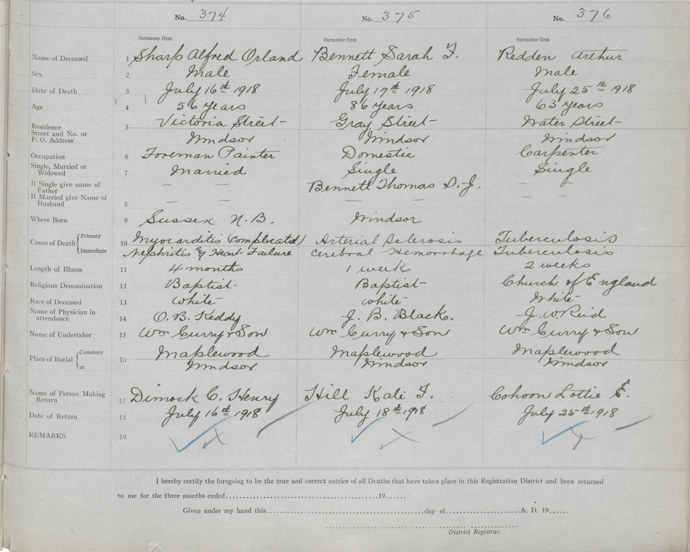 Male Death Registration: Year: 1918 book: 35 page: 477 number: 374