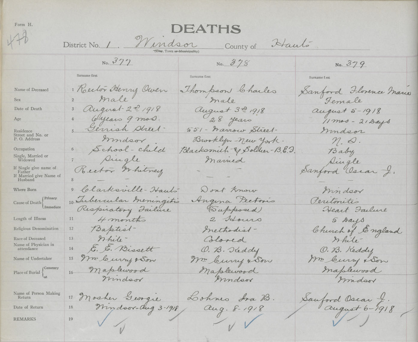 Male Death Registration: Year: 1918 book: 35 page: 478 number: 377