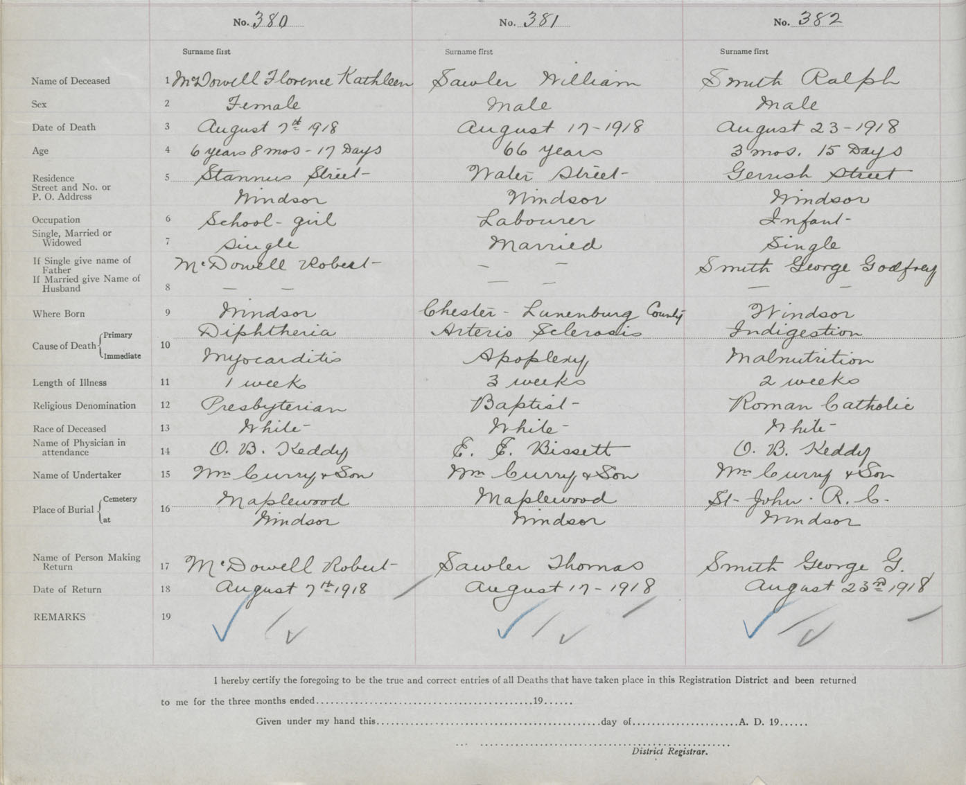 Female Death Registration: Year: 1916 book: 35 page: 478 number: 380