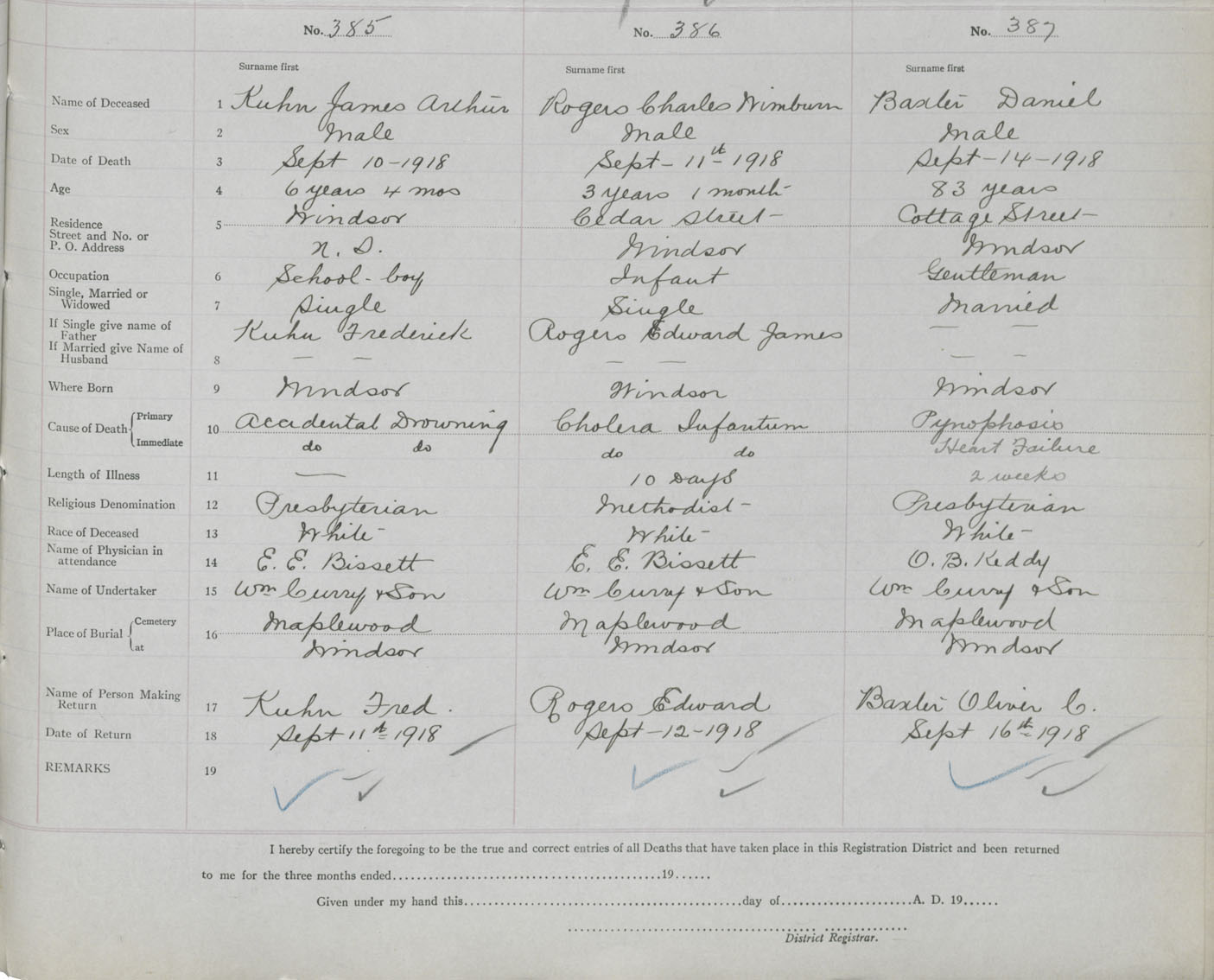 Male Death Registration: Year: 1918 book: 35 page: 479 number: 385